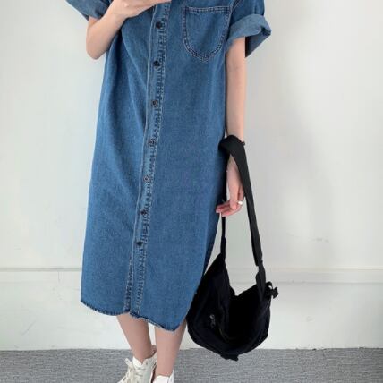 デニムワンピースの着こなしには、靴選びがポイントです。スポーティーなスニーカー、おしゃれ感あるヒールサンダルなど、幅広い靴でスタイリングできます。このアイテム1枚で、一気に今年らしいスタイルにシフトできますよ!
