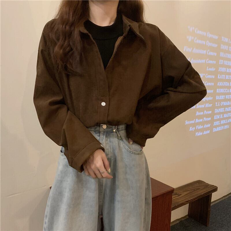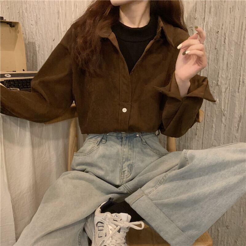 存在感のあるコーデュロイ素材がおしゃれな、シャツトップスのご紹介です。ミディアム丈の長袖で、普段使いや通勤・通学などカジュアルシーンにもぴったりのデザインです。また、ホワイト、ブルー、ブラウン、ワインレッド、キャメルの大人カラーからお選びいただけます。