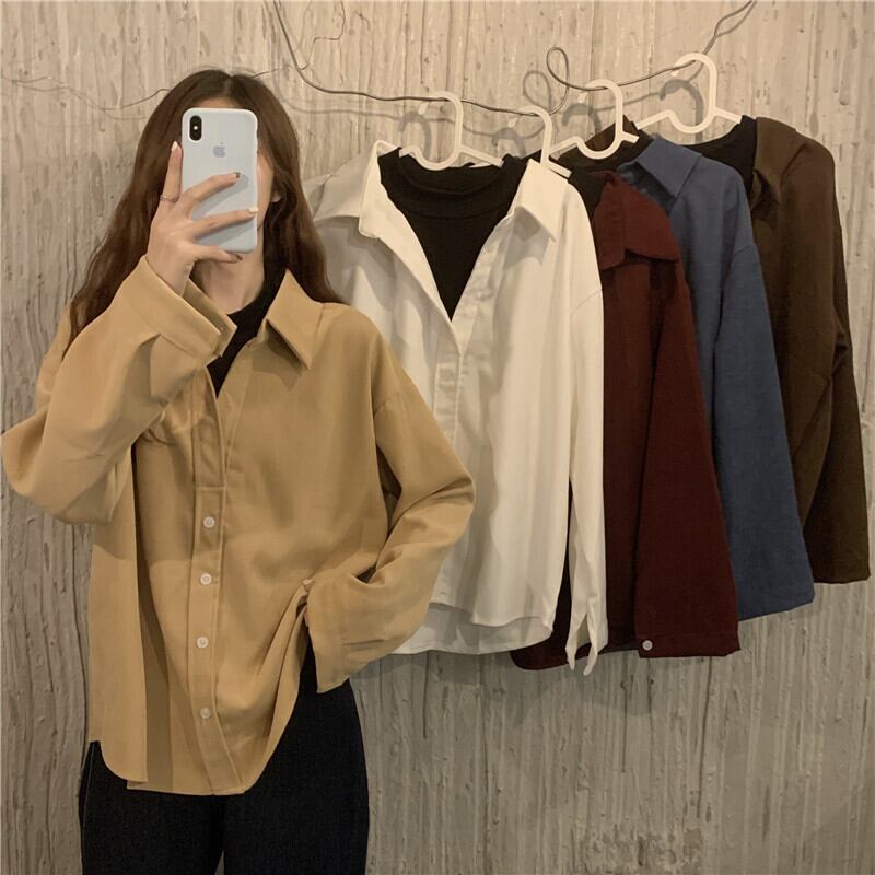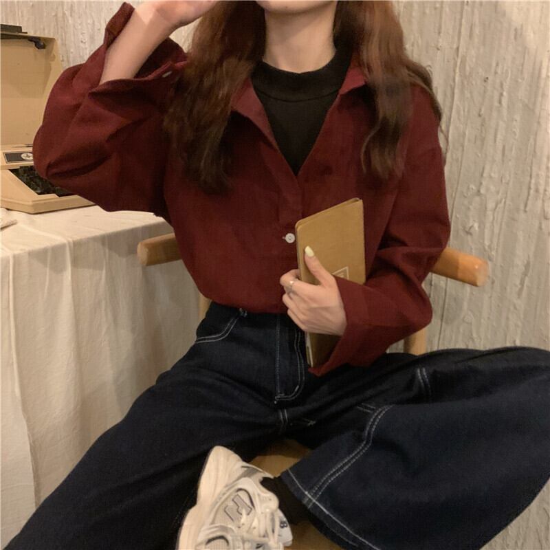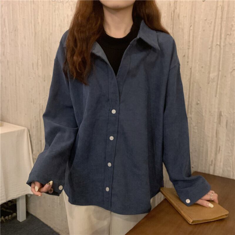 シャツ トップス シャツ プルオーバー ミディアム丈 長袖 白 ホワイト 青 ブルー 茶色 ブラウン ワインレッド キャメル シャツ袖 襟付き ポロカラー ストレート ボタン 厚手 コーデュロイ ツーピース かわいい 大人可愛い きれいめ シンプル カジュアル 大人 おしゃれ レトロ 大人女子 こなれ感 ラフ ルーズ 存在感 とろみ感 無地 秋 冬 10代 20代 30代 通勤 通学 デート お出かけ 女子会 休日 着回し 普段使い 重ね着 ファッション コーデ フリーサイズ 色展開 大人カラー