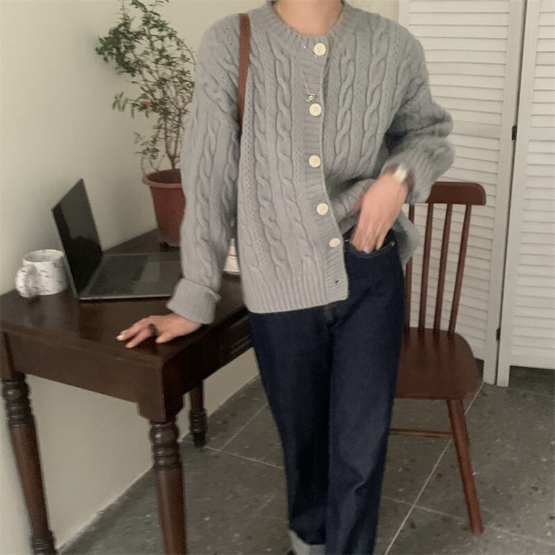 トップス アウター セーター カーディガン 長袖 ラウンドネック かわいい 大人可愛い おしゃれ お洒落 大人可愛い 大人女子 こなれ感 ラフ キュート ガーリー ルーズ 主役級 存在感 無地 春 秋 冬 10代 20代 30代 学生 デート お出かけ お泊まり 休日 着回し 普段使い 重ね着 韓国 韓国系 ファッション コーデ 楽ちん 暖かい モテ 新作 定番 送料無料 トレンド 流行 ビッグサイズ ゆったり ゆる インポート 海外 人気 合わせやすい 大人カジュアル ケーブルニット シンプル 前開き