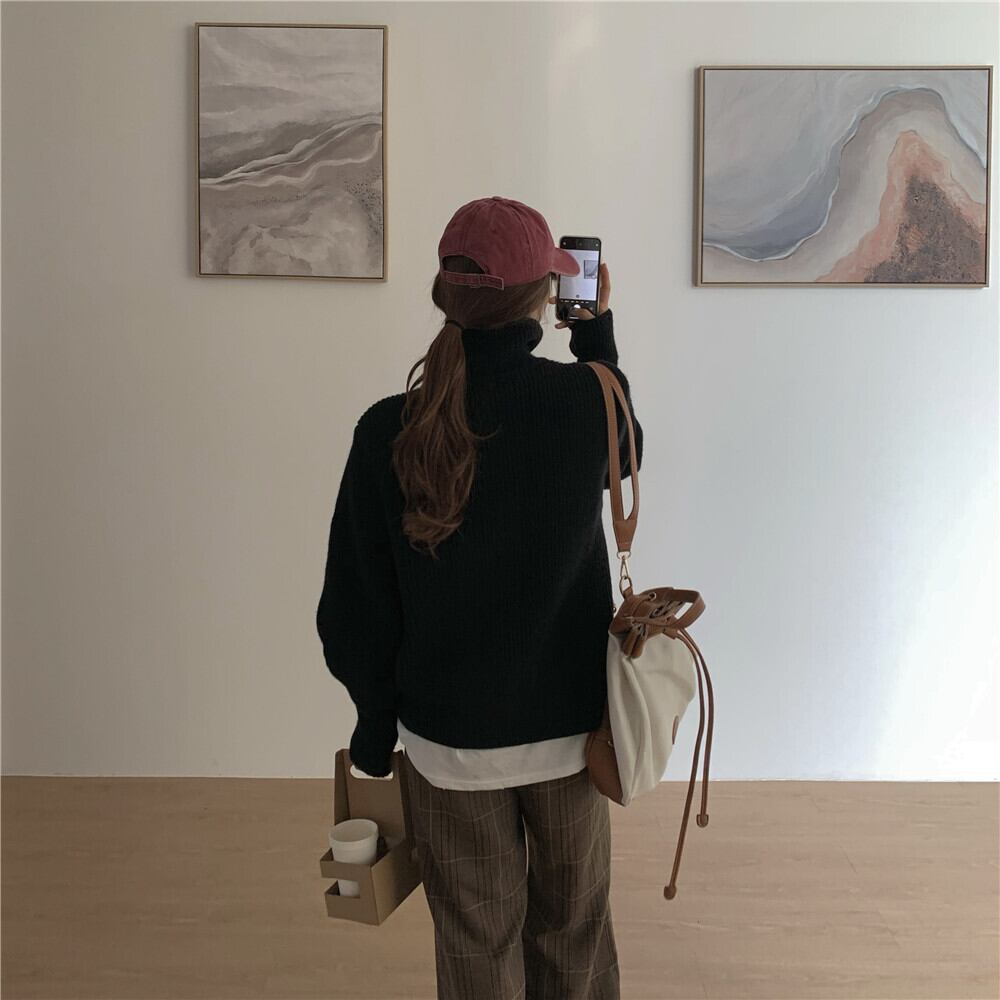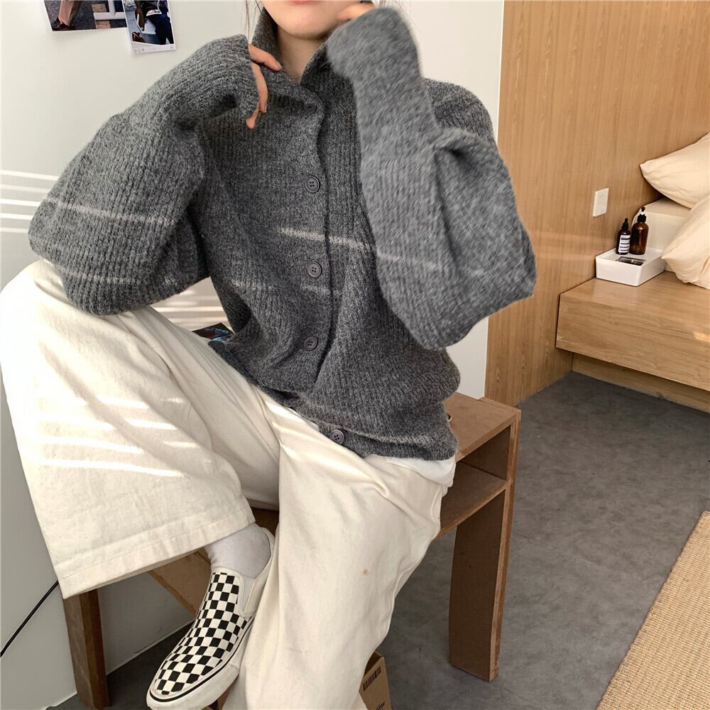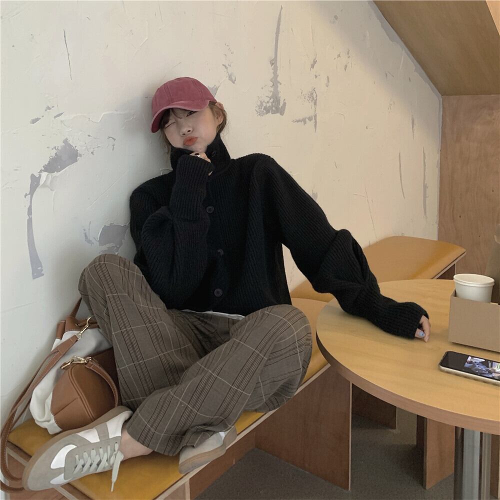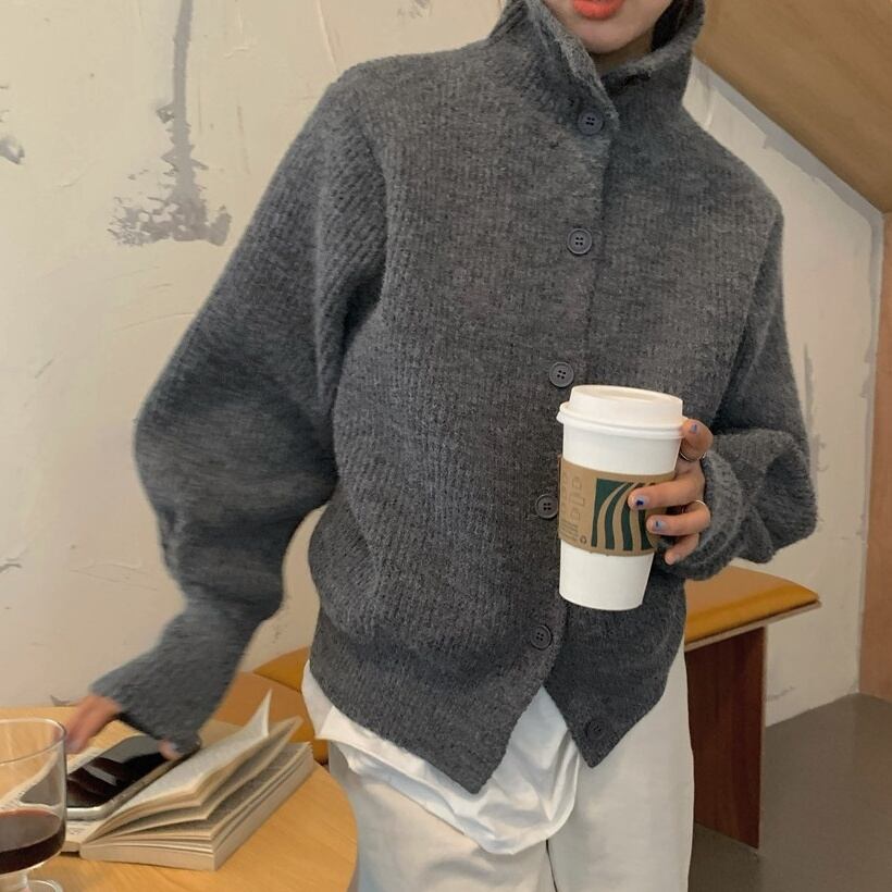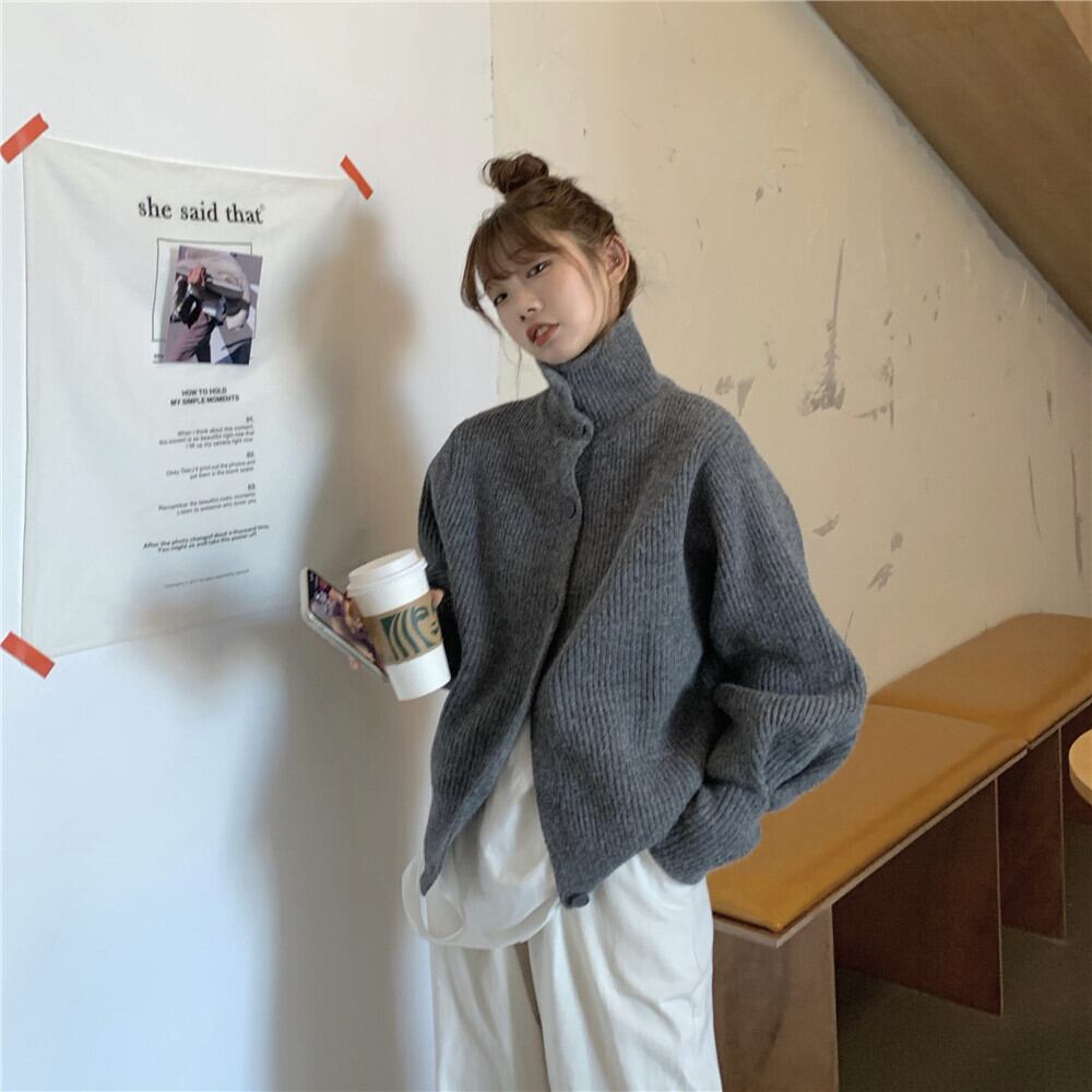 ハイネックカーディガンは、大人可愛いシンプルなデザインが魅力です。長袖で秋冬の着こなしに最適。ハイネックが首元をカバーしてくれるので、防寒対策もばっちり。さらに、ボーイッシュな要素を取り入れたメンズライクなルーズシルエットが、こなれ感を演出してくれます。モード系の主役級アイテムで、存在感たっぷり。無地なので、幅広いコーディネートに合わせられ、普段使いはもちろん、デートやお出かけ、女子会やお泊まり、休日などでも重宝します。秋冬の着回し力抜群の大定番アイテムです。送料無料で新作トレンドの韓国系ファッションを手軽に楽しめます。柔らかく暖かい素材で、楽ちんに過ごせますよ。この一枚で、あなたも思い切り可愛く、オシャレに決まること間違いなし!注意点は、洗濯には取り扱い表記に従ってください。