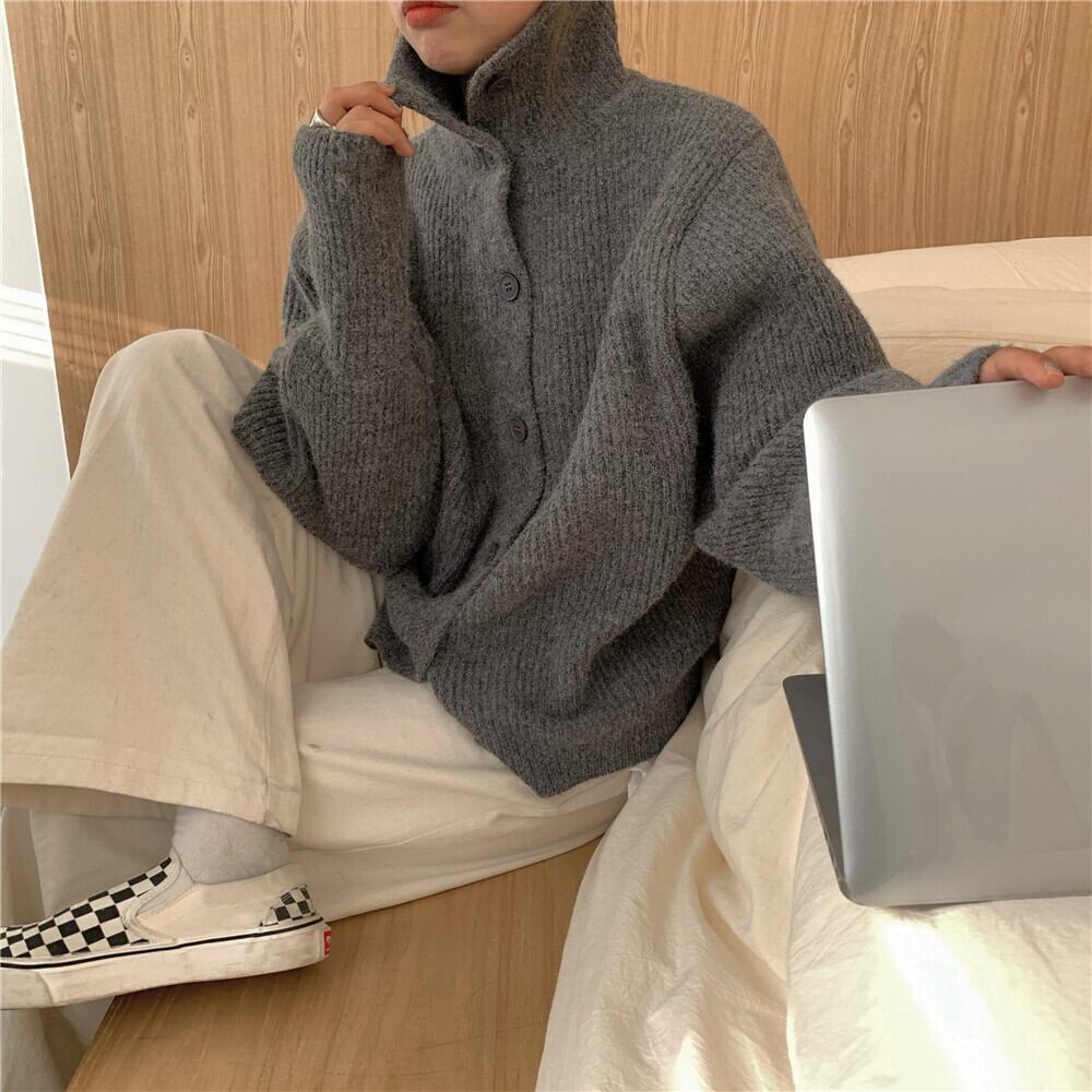 ハイネックカーディガン トップス セーター カーディガン 長袖 ハイネック 大人可愛い シンプル おしゃれ お洒落 大人可愛い 大人女子 こなれ感 ラフ メンズライク ボーイッシュ キュート ルーズ クール モード系 主役級 存在感 無地 秋 冬 10代 20代 30代 レディース 女性用 女の子 学生 デート お出かけ 公園デビュー 女子会 お泊まり 休日 着回し 普段使い 重ね着 韓国 韓国系 ファッション コーデ スタイル 楽ちん 暖かい モテ 新作 定番 送料無料 トレンド 流行 大きめ