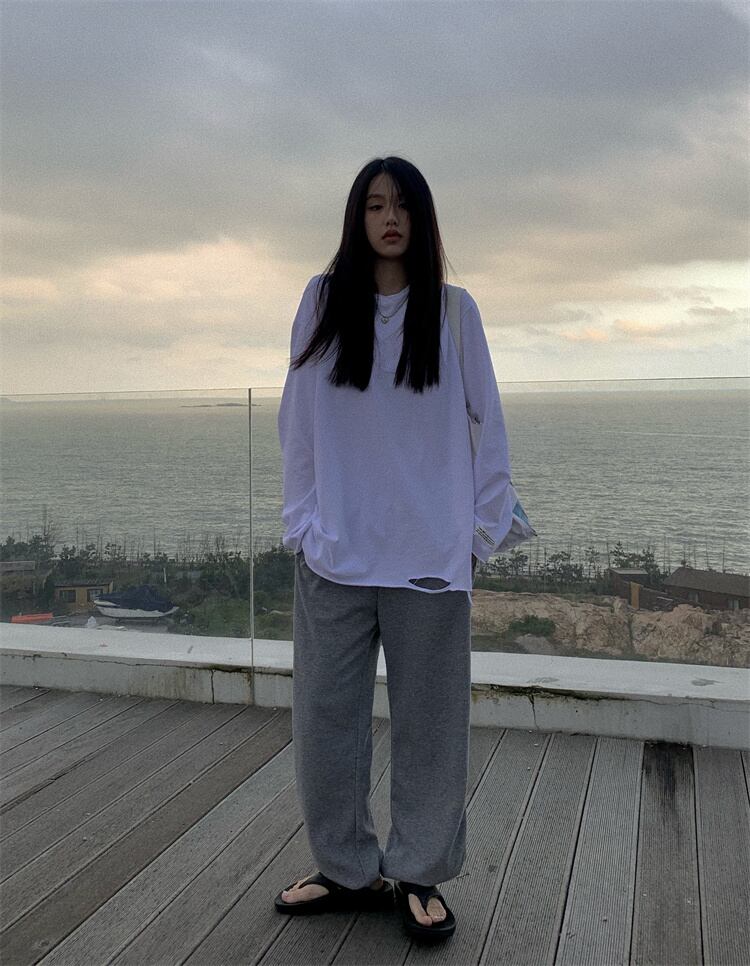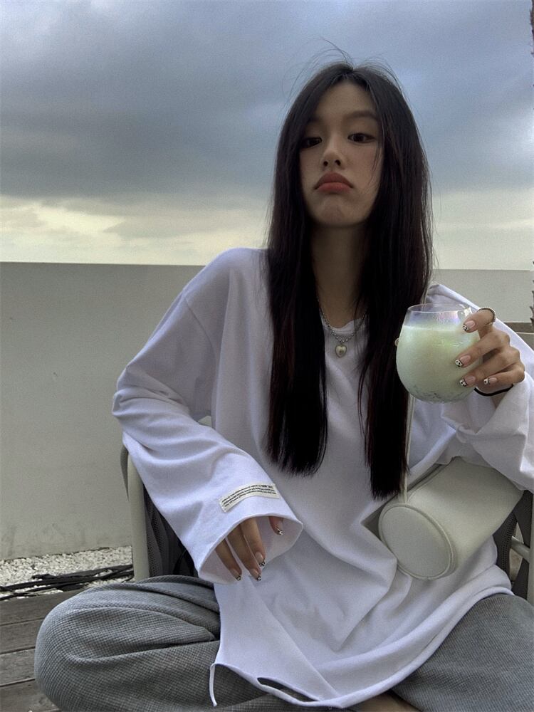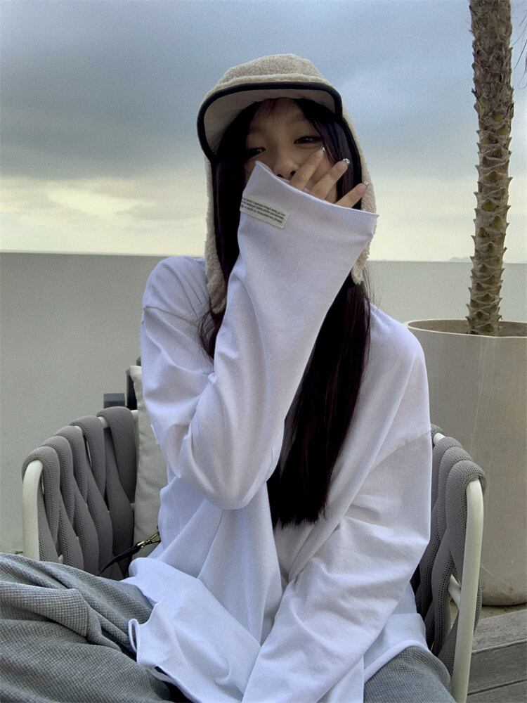 白トップスに長袖の萌袖カットソー。カジュアルながらも大人可愛いスタイルにぴったり。韓国系ファッションの要素を取り入れたビッグサイズや、ダメージ感のあるデザインが、こなれ感とボーイッシュな雰囲気を演出します。ゆったりとしたシルエットで体系カバーができるので、自信を持って着こなせます。