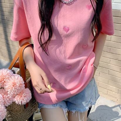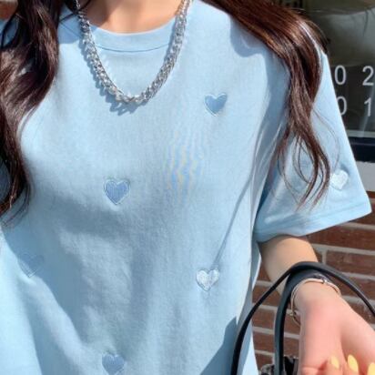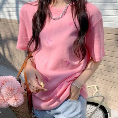 ハート柄Tシャツ ピンク ブルー トップス Tシャツ シャツ 半袖 スリム 細身 ストレート スマート かわいい きれいめ シンプル 大人 上品 おしゃれ 大人可愛い 大人女子 こなれ感 ラフ クール モード系 セクシー エレガント 無地 春 秋 冬 誕生日 謝恩会 二次会 ハロウィン クリスマス バレンタイン レディース 女性用 学生 通学 デート お出かけ 女子会 お泊まり 休日 アウトドア パーティー イベント リゾート 旅行 ホテル レストラン 着回し 普段使い 韓国 韓国系 オルチャン ギフト
