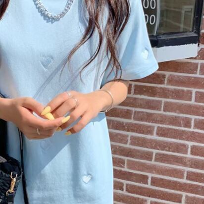 心を踊らせる可愛らしさ!ハート柄Tシャツが登場しました。ピンクとブルーという、女性らしさと爽やかさを兼ね備えた2色展開です。シンプルなデザインで、お洒落度がグッと上がる一着。細身でシルエットも美しく、スタイルアップも叶いますよ。