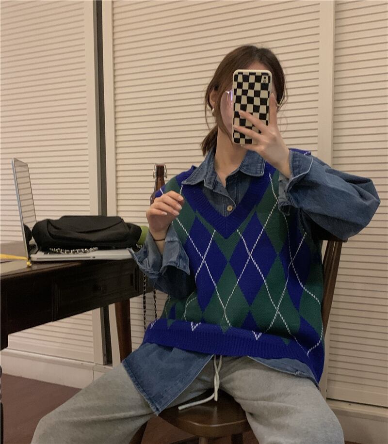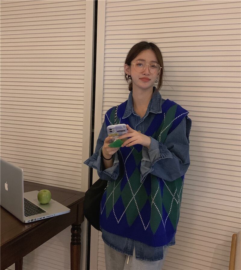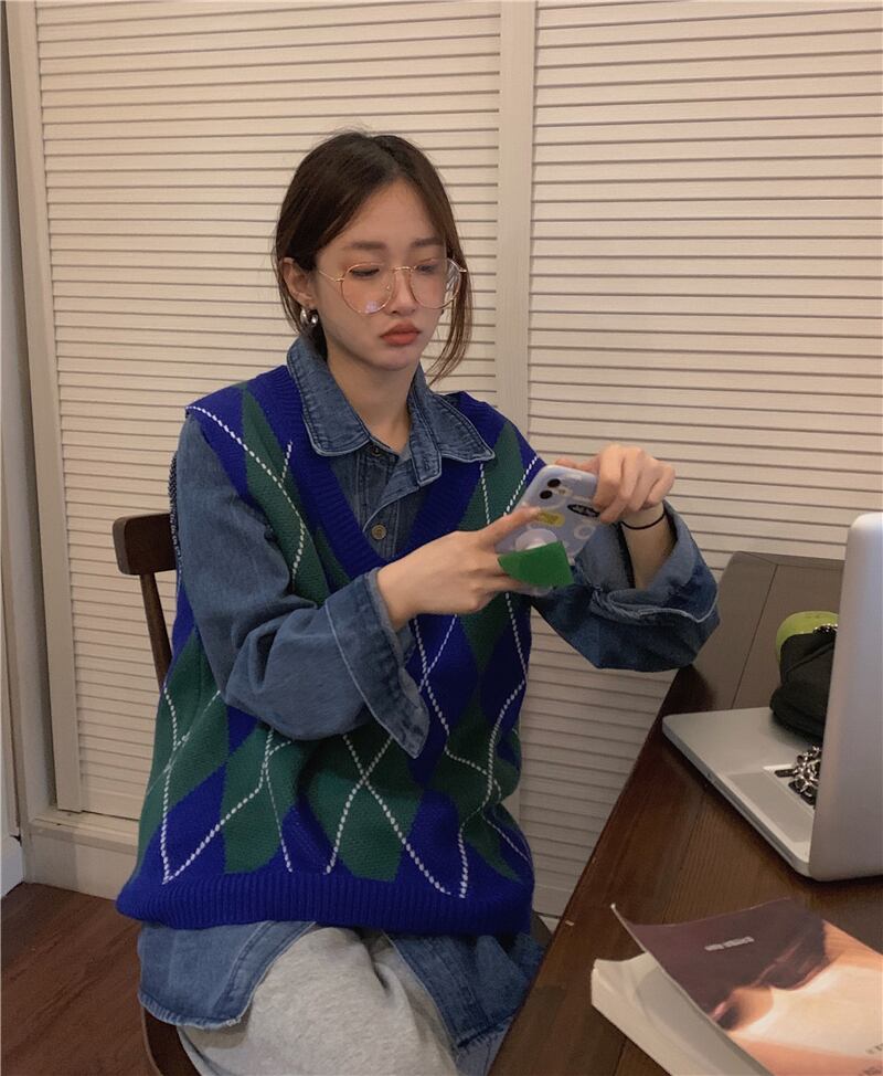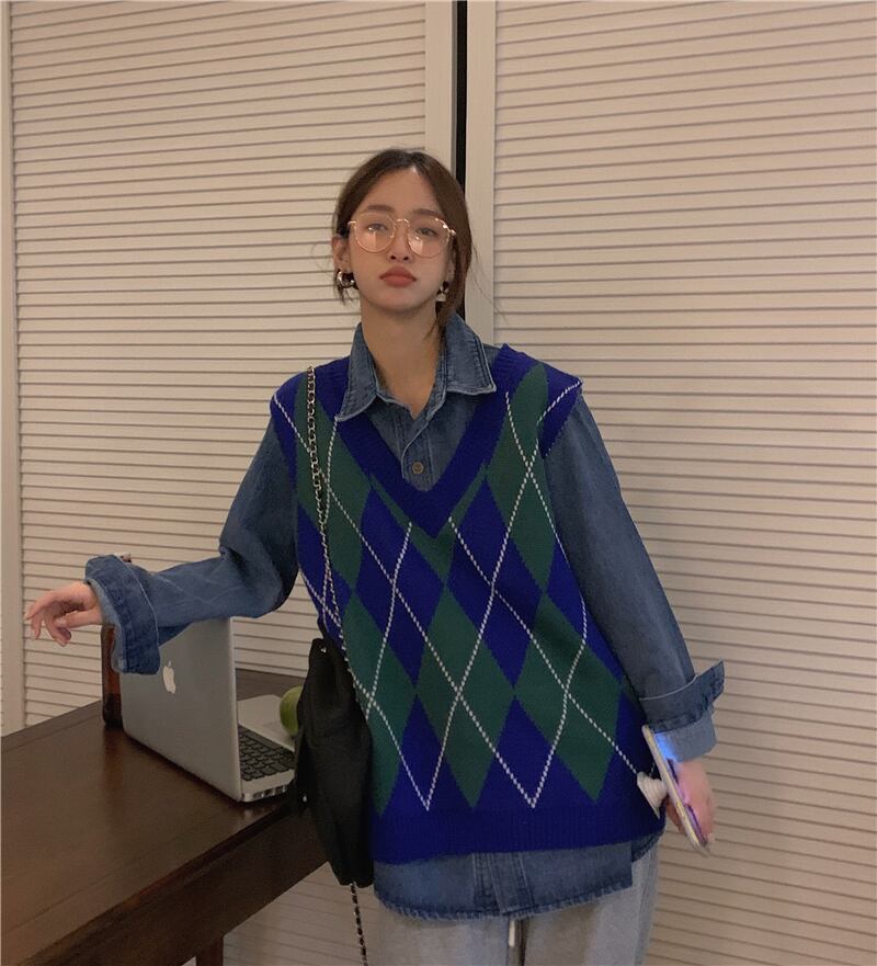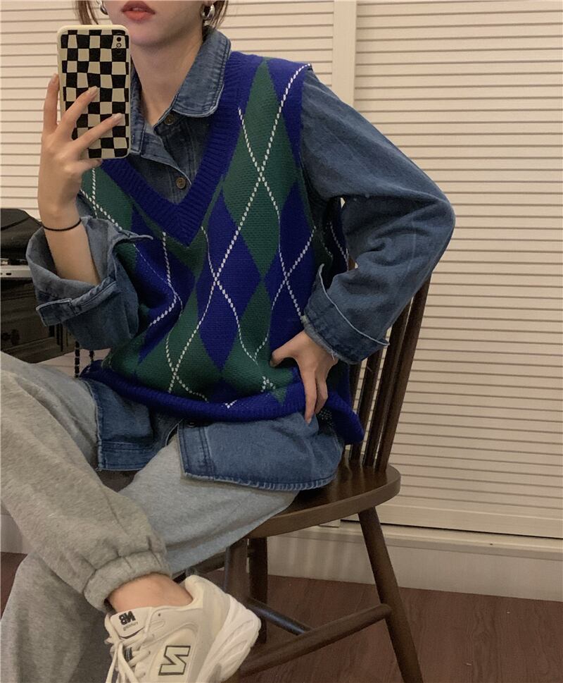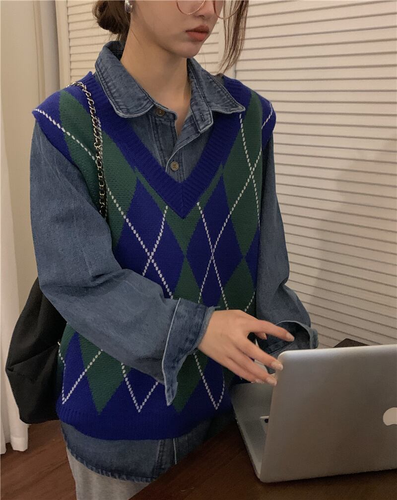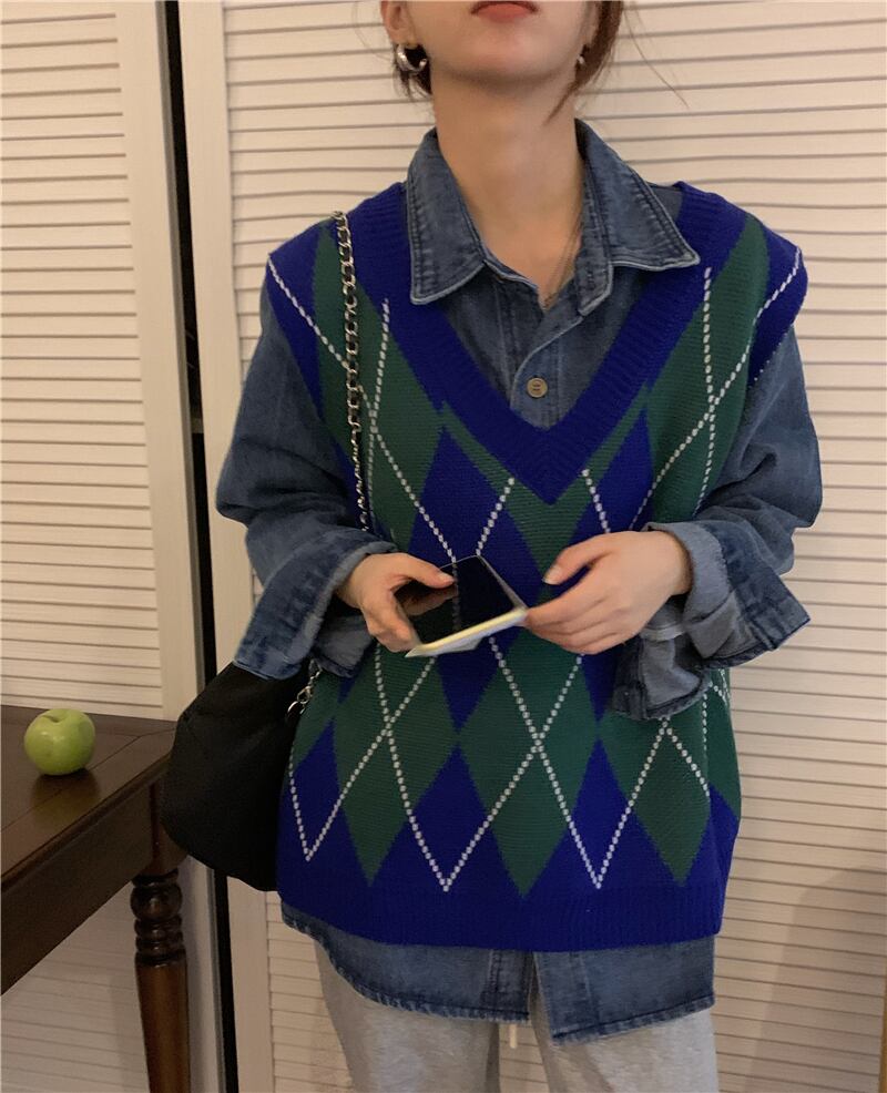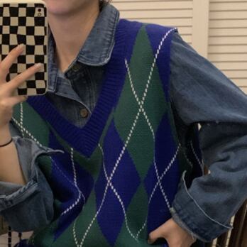 ニットベスト トップス ベスト 袖なし Vネック かわいい 大人可愛い おしゃれ お洒落 レトロ 大人可愛い 大人女子 こなれ感 ラフ ボーイッシュ キュート ガーリー ルーズ 個性的 柄 アーガイル 春 秋 冬 10代 20代 30代 レディース 女性用 女の子 学生 デート お出かけ 女子会 お泊まり 休日 着回し 普段使い 重ね着 韓国 韓国系 ファッション コーデ スタイル 暖かい モテ 送料無料 トレンド 流行 インスタ映え 大きい 大きめ ビッグサイズ ゆったり ゆる 個性的 ヴィンテージ