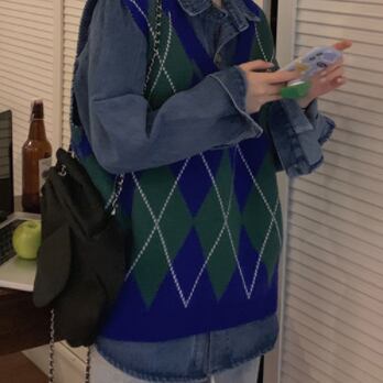 アーガイル柄レトロで可愛いニットベストです。