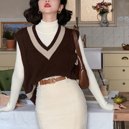 この春、Vネックニットベストであなたもおしゃれ上級者に!是非、お手元に取り入れてください。