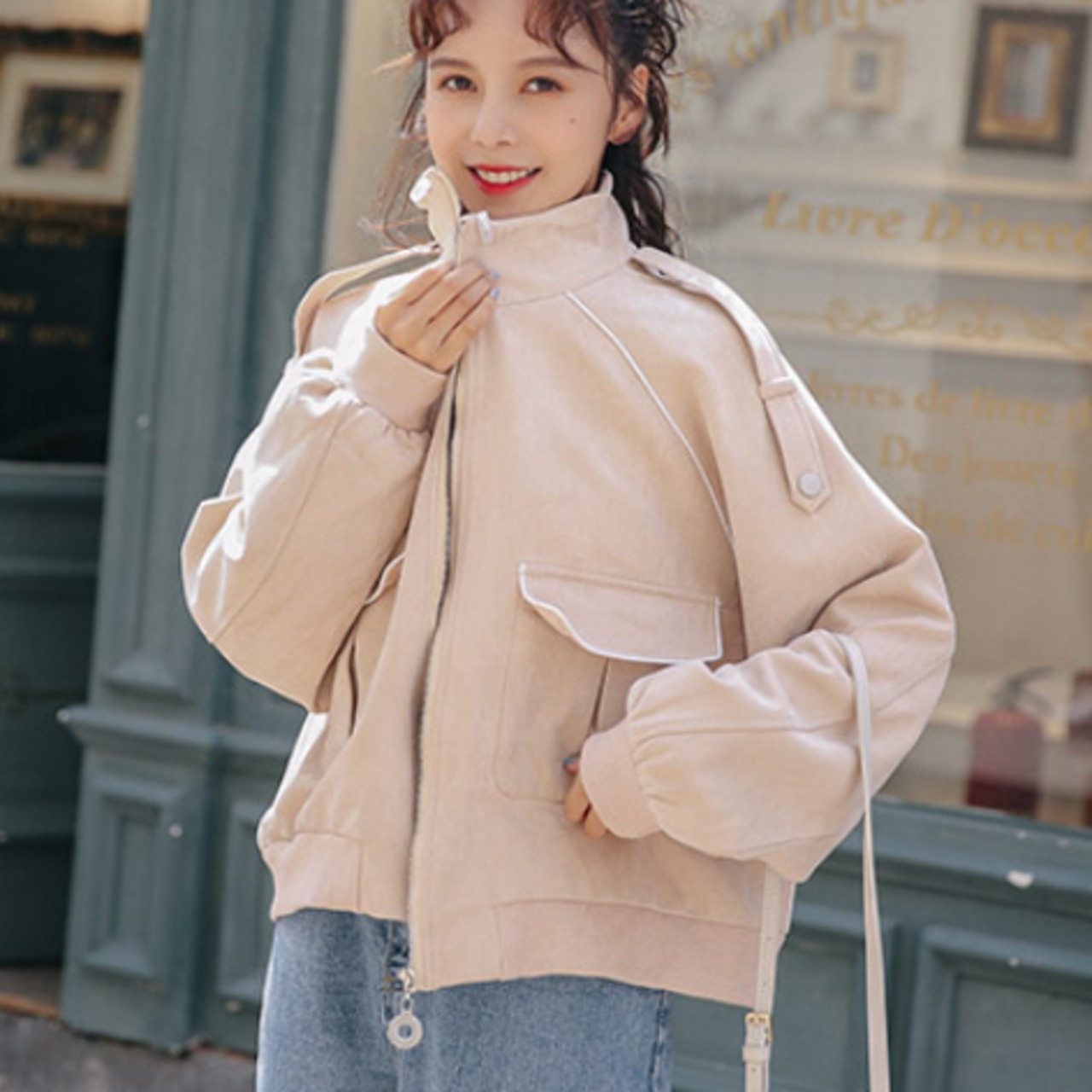 ブルゾン ジャンパー ジッパー ジャケット アプリコット ホワイト 白 ラグランスリーブ ミリタリー デザイン アウター 袖あり 長袖 スタンドカラー かわいい 大人可愛い きれいめ シンプル カジュアル スポーティー 大人 上品 おしゃれ お洒落 大人女子 こなれ感 キュート ガーリー 主役級 存在感 春 秋 2021 レディース 女性用 学生 通学 デート 休日 お出かけ 女子会 イベント 旅行 着回し 普段使い 定番 韓国系 モテ トレンド 流行 インスタ映え おすすめ インポート S M L XL