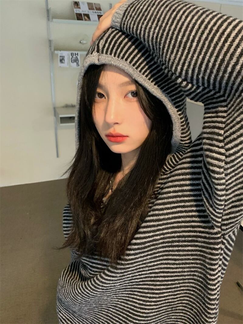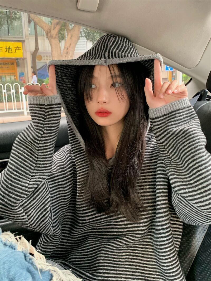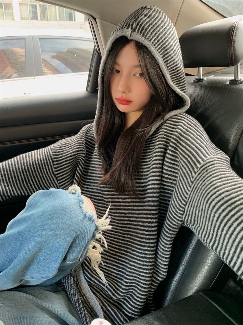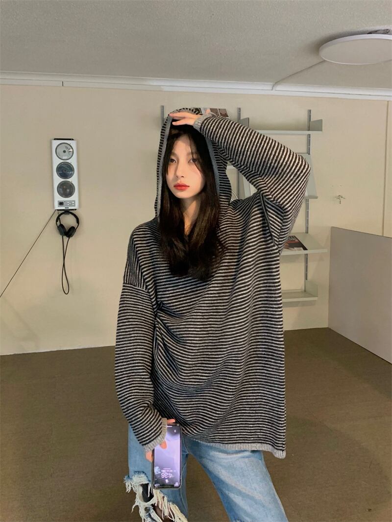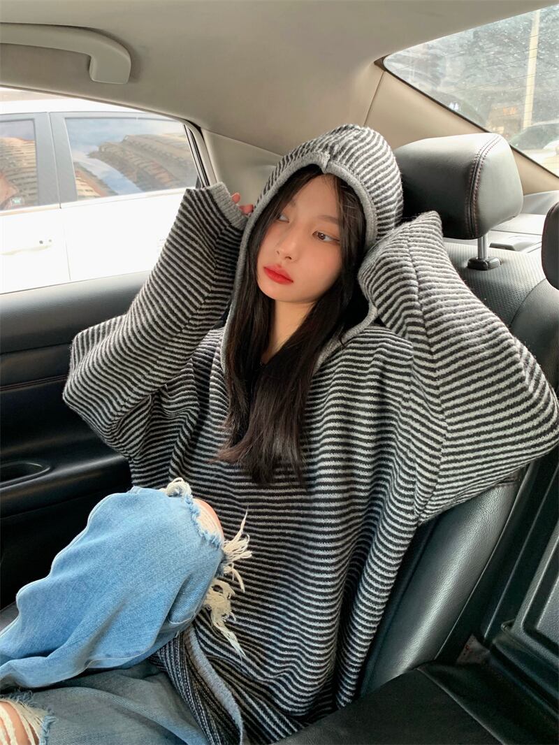 フード付きニット トップス ニットソー セーター 長袖 フード付き かわいい 大人可愛い シンプル おしゃれ お洒落 かっこいい 大人可愛い 大人女子 こなれ感 ラフ メンズライク ボーイッシュ キュート ガーリー ルーズ 個性的 クール 主役級 ボーダー 秋 冬 10代 20代 30代 レディース 女性用 ママ 女の子 学生 デート お出かけ 女子会 休日 着回し 普段使い 韓国 韓国系 ファッション コーデ スタイル 楽ちん 暖かい 体系カバー 新作 定番 トレンド 流行 大きい 大きめ ビッグサイズ