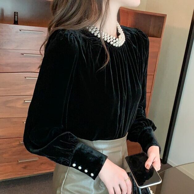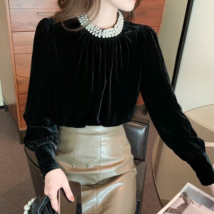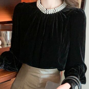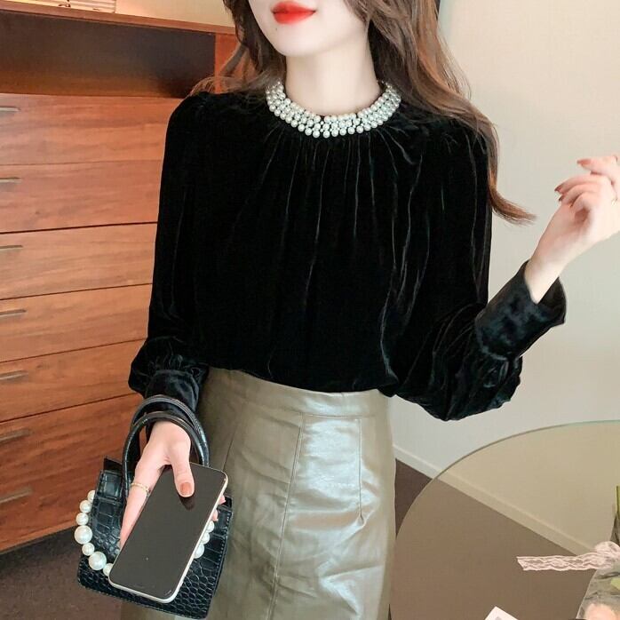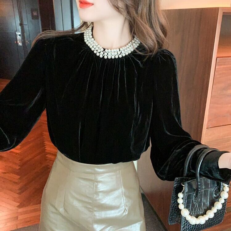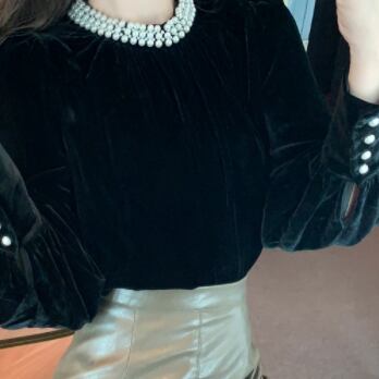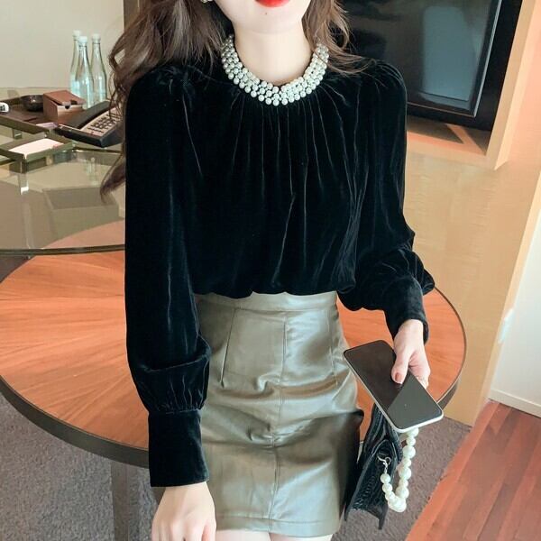 ベロアシャツ ビーズ付き ブラック トップス シャツ ブラウス スリム 細身 ストレート スマート かわいい きれいめ シンプル 大人 上品 おしゃれ 大人可愛い 大人女子 こなれ感 ラフ クール モード系 セクシー エレガント 無地 春 秋 冬 誕生日 謝恩会 二次会 ハロウィン クリスマス バレンタイン レディース 女性用 学生 通学 デート お出かけ 女子会 お泊まり 休日 アウトドア パーティー イベント リゾート 旅行 ホテル レストラン 着回し 普段使い 韓国 韓国系 オルチャン ファッション
