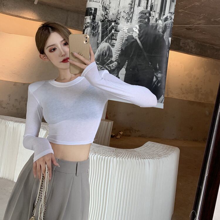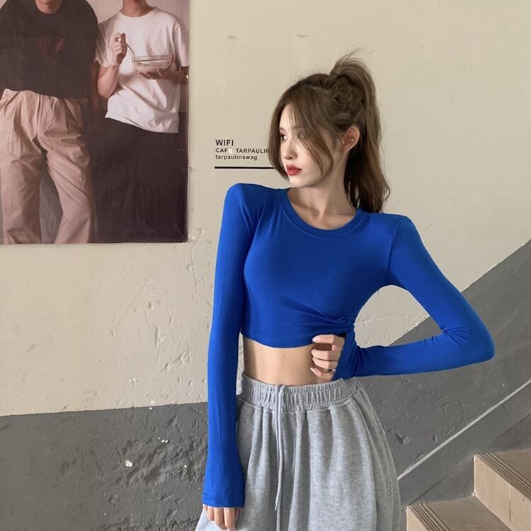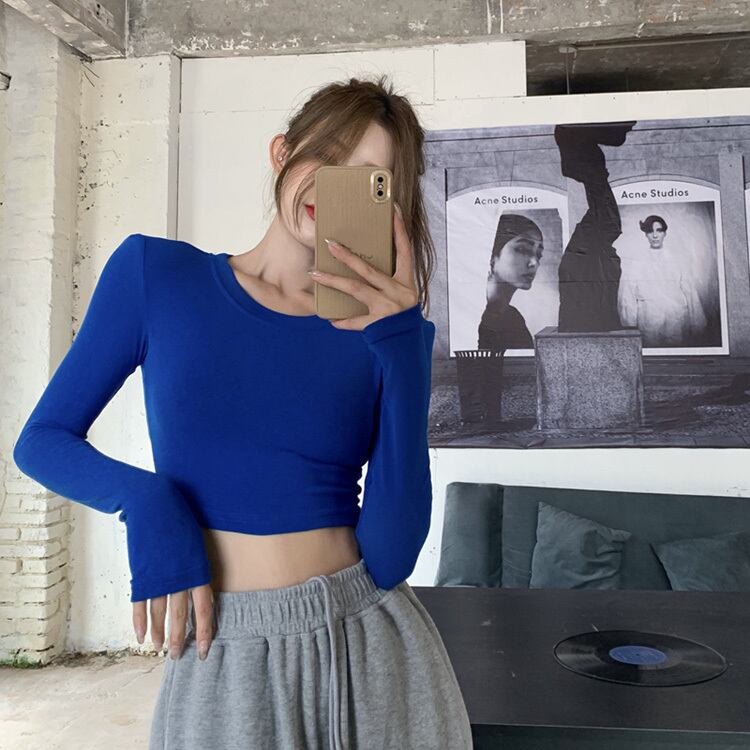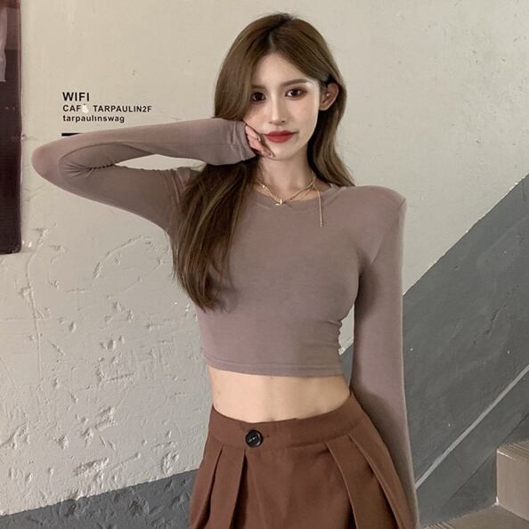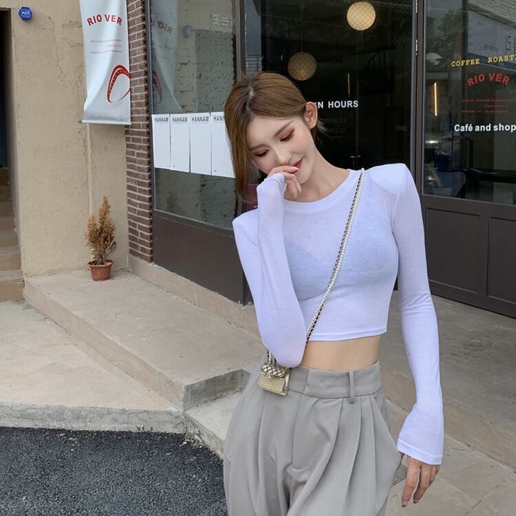 トップス カットソー ショート ショート丈 長袖 ラウンドネック スリム タイト 細身 スマート かわいい 大人可愛い シンプル 大人 おしゃれ お洒落 かっこいい 大人可愛い 大人女子 こなれ感 ラフ メンズライク ボーイッシュ スポーティー キュート 個性的 セクシー 無地 デート お出かけ 女子会 休日 運動 ジム ヨガ 着回し 普段使い 重ね着 韓国 韓国系 ファッション コーデ スタイル 楽ちん 新作 定番 送料無料 トレンド 流行 インポート 海外 人気 レイヤード インナー 合わせやすい