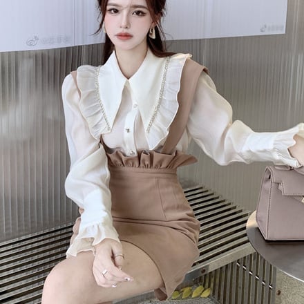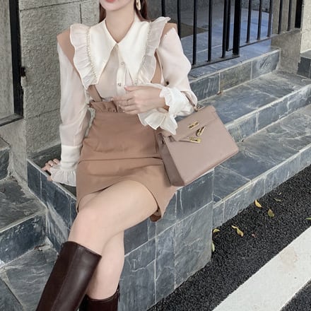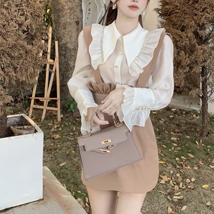 大人の女性にも似合う、大人可愛い雰囲気は重宝します。袖口や裾のフリル、ストラップのデザインが、女性らしい雰囲気を演出。秋冬はタートルネックと重ね着して、春夏はひとつでも着られて、着回し力も高い万能アイテムです。