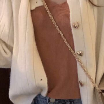 リブが可愛いニットカーディガンです。