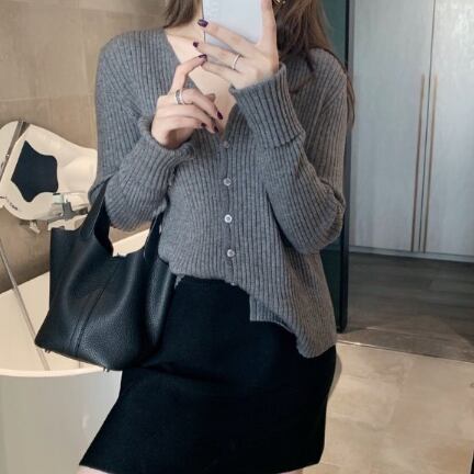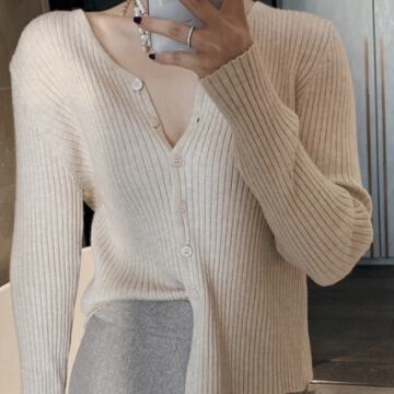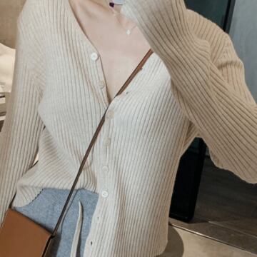 シンプルなVネックリブカーディガンです。