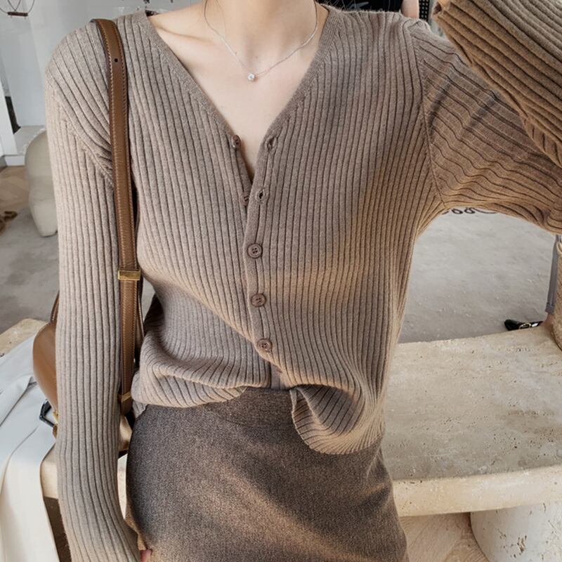 大人かわいい、主役級の存在感、何にでも合わせやすいVネックリブカーディガンは、20代から30代の幅広い年代におすすめの一枚です。おしゃれな女性たちが憧れる、自分らしいファッションを楽しんでください。