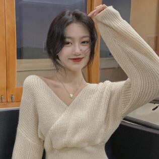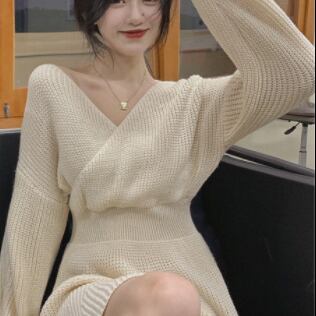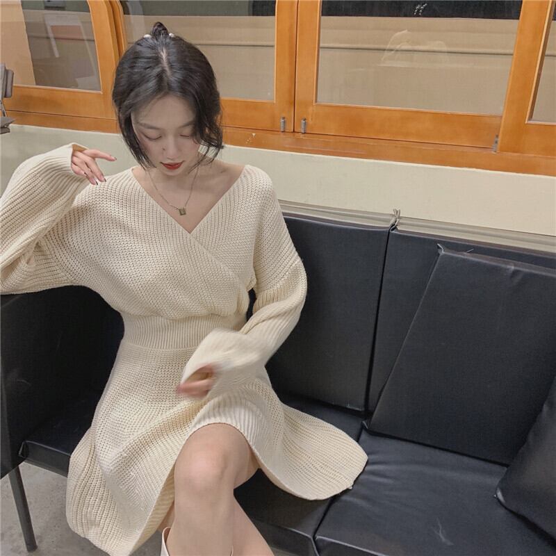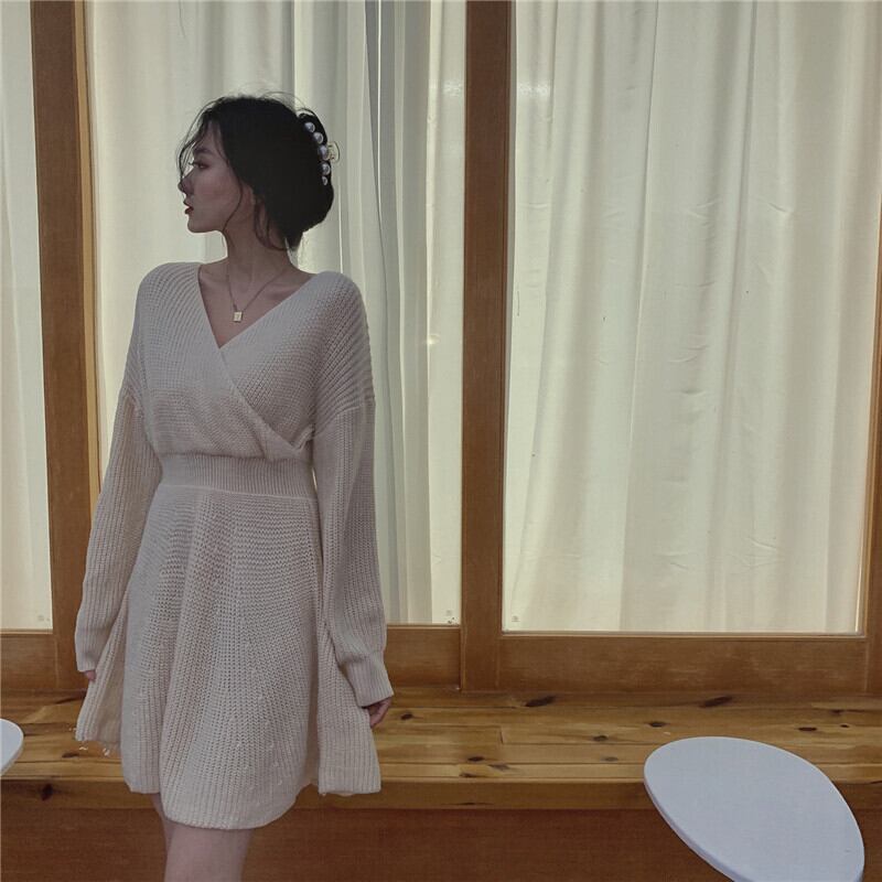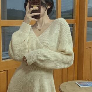 クロスVネックニットワンピース