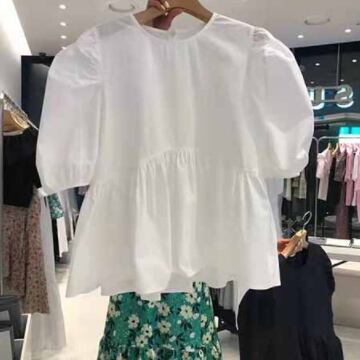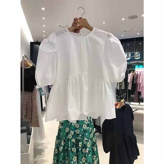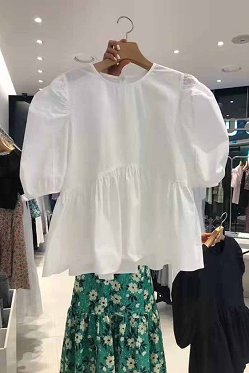 トップス ブラウス チュニック 白トップス パフスリーブ ラウンドネック フレア ペプラム かわいい 大人可愛い きれいめ シンプル おしゃれ お洒落 大人可愛い 大人女子 ラブリー キュート ガーリー 個性的 セクシー エレガント 主役級 無地 春 夏 10代 20代 30代 レディース 女性用 OL 学生 デート お出かけ 女子会 お泊まり 休日 着回し 普段使い 韓国 韓国系 ファッション コーデ スタイル 暖かい モテ 送料無料 トレンド 流行 インスタ映え インポート 海外 人気 デートコーデ