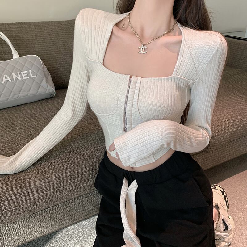 リブニット トップス ニットソー セーター 長袖 萌袖 スクエアネック スリム タイト 細身 スマート リブ 前開き かわいい 大人可愛い シンプル 大人 おしゃれ お洒落 大人可愛い 大人女子 キュート ガーリー 個性的 クール セクシー 無地 春 秋 10代 20代 30代 レディース デート お出かけ 女子会 お泊まり 休日 着回し 重ね着 韓国 韓国系 ファッション コーデ スタイル モテ 新作 定番 送料無料 トレンド 流行 インスタ映え インポート 海外 海外セレブ 人気 ぴったり コルセット