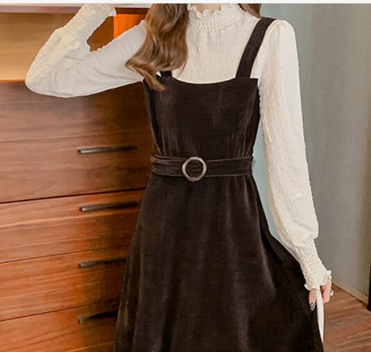 ジャンバースカート風ワンピース ワンピース ミモレ丈 長袖 ハイネック タートルネック フレア Aライン ベルト ウエストマーク 切り替えデザイン かわいい 大人可愛い きれいめ シンプル 大人 上品 おしゃれ 大人可愛い 大人女子 ラブリー キュート ガーリー 無地 春 秋 誕生日 バレンタイン 10代 20代 30代 40代 レディース 女性用 学生 通学 デート お出かけ 女子会 休日 着回し ファッション コーデ スタイル モテ プレゼント トレンド 流行 個性的 合わせやすい 好感度