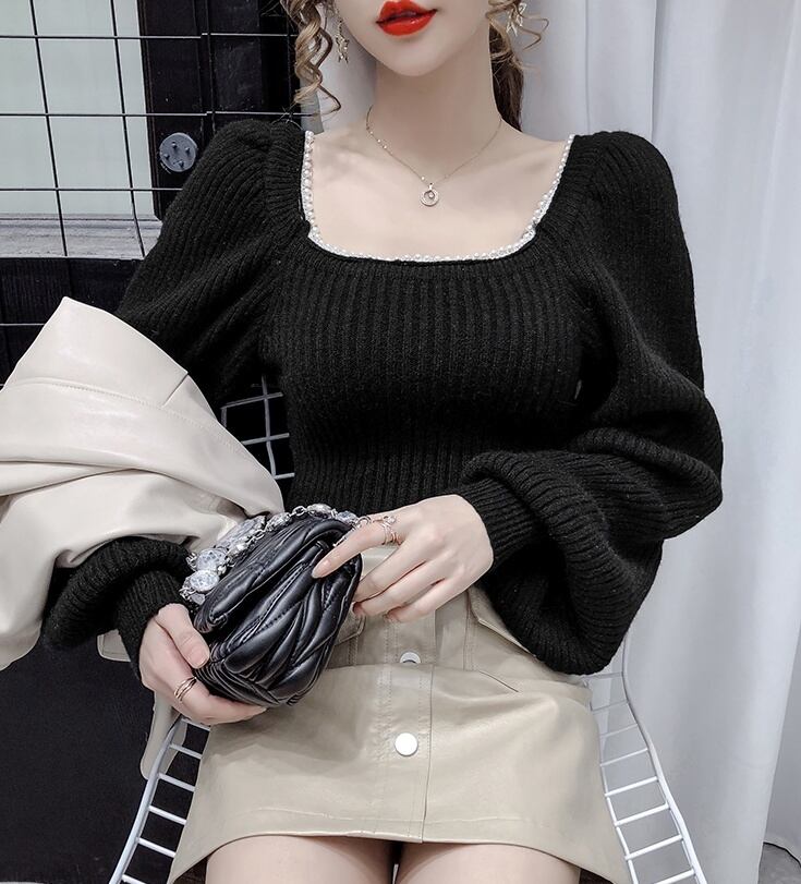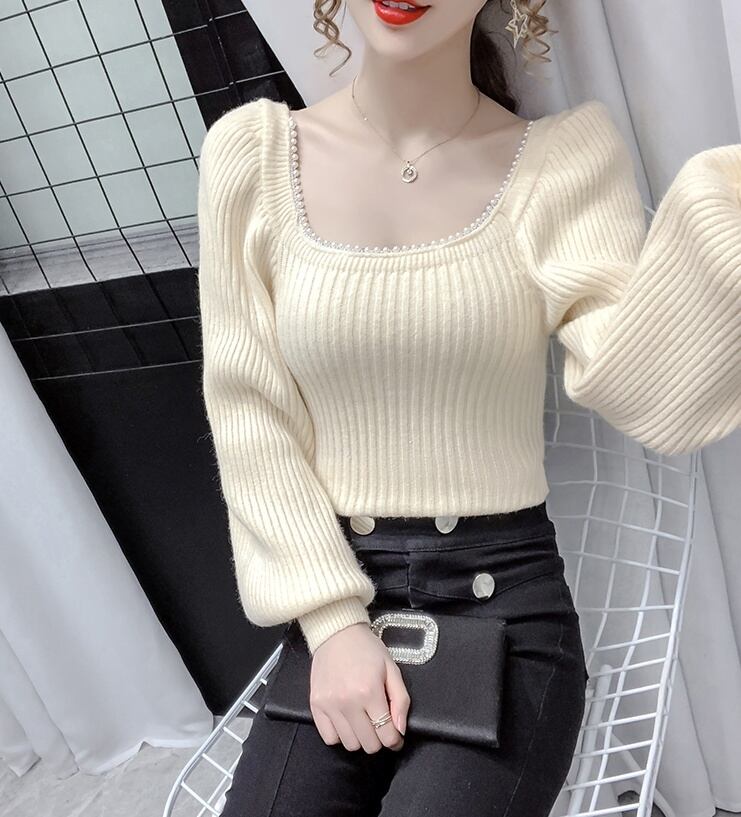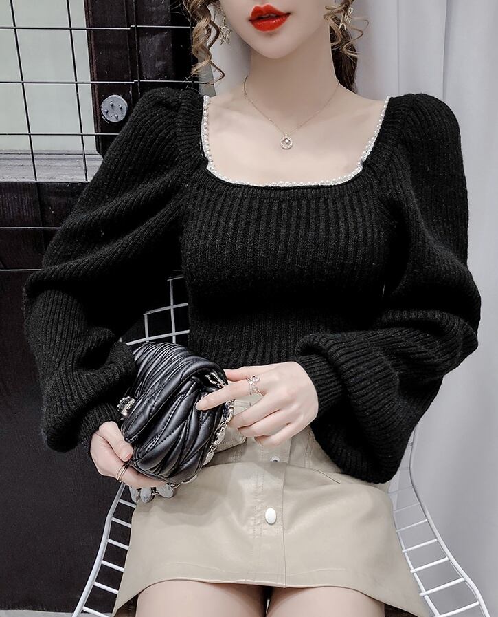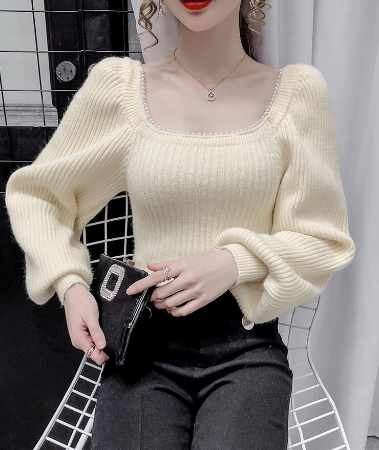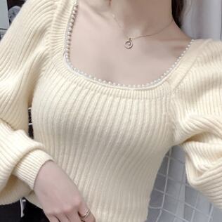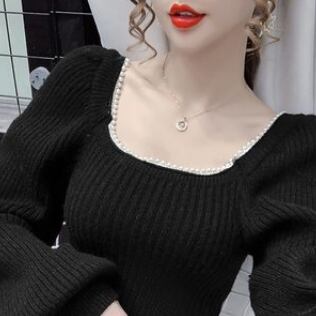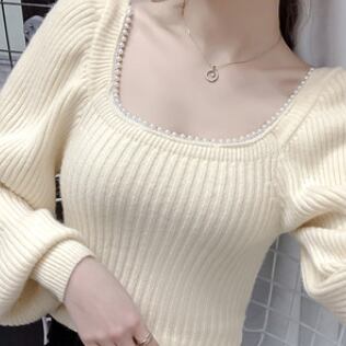 トップス ニットソー セーター 長袖 スクエアネック パール かわいい 大人可愛い きれいめ 大人 上品 おしゃれ お洒落 大人可愛い 大人女子 ラブリー キュート ガーリー セクシー エレガント 主役級 無地 入学式 入園式 卒業式 卒園式 二次会 10代 20代 30代 レディース 女性用 女の子 OL 学生 デート お出かけ 女子会 お泊まり 休日 ホテル レストラン 韓国 韓国系 ファッション コーデ スタイル モテ 新作 定番 送料無料 トレンド 流行 インスタ映え インポート 海外 人気