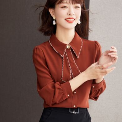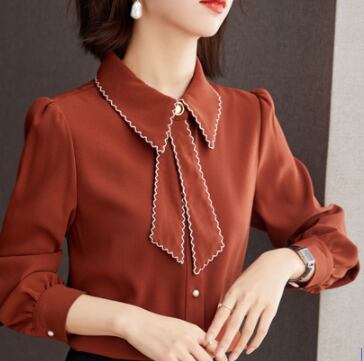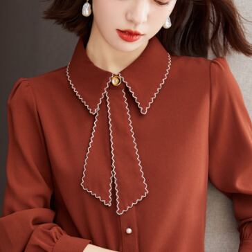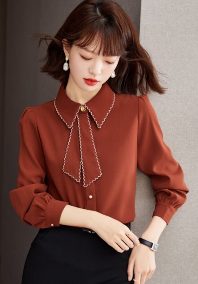おしゃれな襟付きのシャツに、リボンやボウタイがポイントのお洒落なレディーストップス。大人可愛い、上品で、カジュアルな着こなしにもきれいめな着こなしにもぴったりなシンプルなデザインです。くすんだカラーも豊富で、色んなシーンで着回せます。サイズ展開も豊富なので、大きいサイズや小さいサイズでもOK。