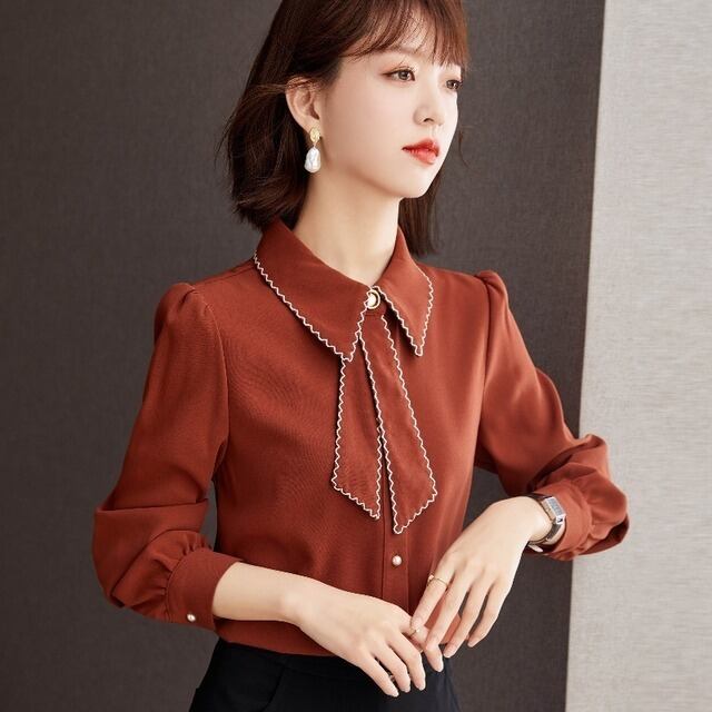 トップス レディース シャツ ブラウス袖あり 長袖 襟付き リボン ボウタイ 可愛い 大人可愛い きれいめ シンプル カジュアル 大人 上品 おしゃれ お洒落 かわいい レトロ フェミニン 大人女子 くすみカラー 大人カラー S M L XL 2XL 大きいサイズあり 無地 春 夏 秋 冬 オールシーズン シーズンレス 10代 20代 30代 40代 ママ オフィス ビジネス OL 通勤 学生 通学 デート お出かけ 公園デビュー 女子会 旅行 着回し 普段使い お揃い定番
