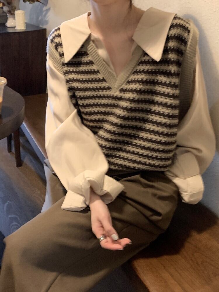 Vネックニットベスト トップス ベスト 袖なし Vネック かわいい 大人可愛い シンプル カジュアル 大人 おしゃれ お洒落 大人可愛い 大人女子 ラフ キュート クール モード系 主役級 ボーダー 春 秋 冬 10代 20代 30代 40代 レディース 女性用 着回し 普段使い 重ね着 韓国 韓国系 ファッション コーデ スタイル 楽ちん 暖かい モテ 新作 定番 送料無料 トレンド 流行 大きめ ビッグサイズ ゆったり ゆる バイカラー インポート 海外 人気 大人カジュアル 合わせやすい