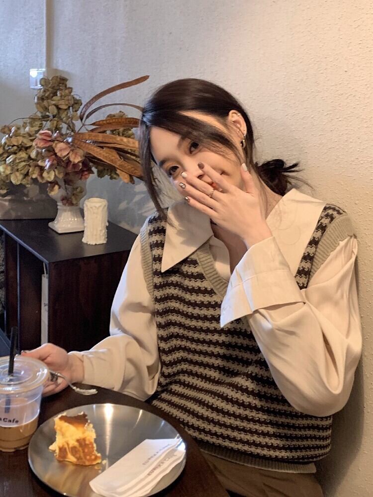 Vネックデザインが女性らしい印象を与える、モード系のニットベストです。袖がなく、シンプルなデザインなので、重ね着をしてもスッキリとした印象を与えます。カジュアルな着こなしや、大人可愛いスタイルにもマッチする優秀アイテムです。