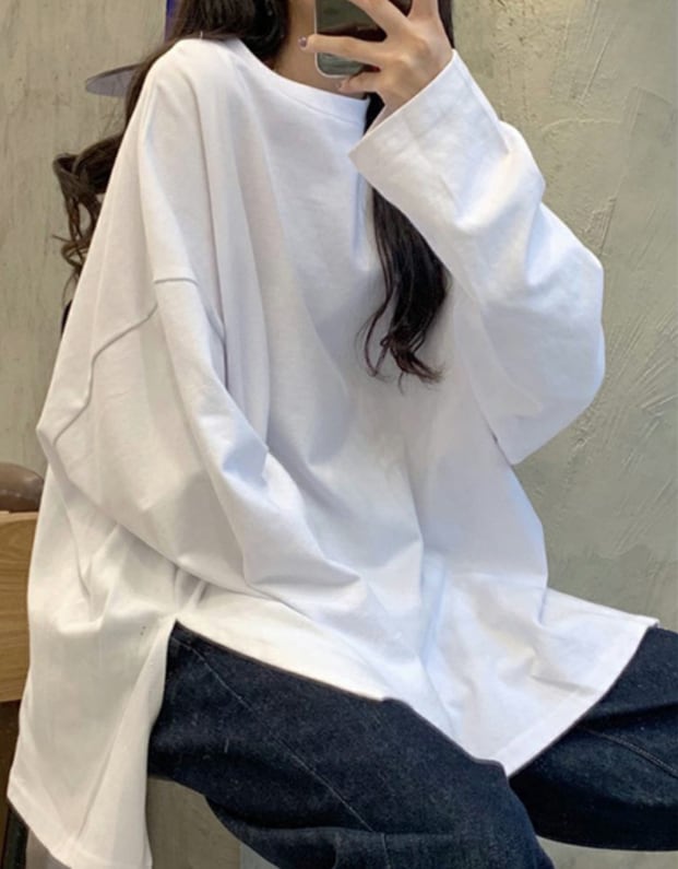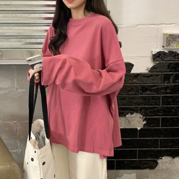 トップス カットソー 長袖 ラウンドネック かわいい 大人可愛い シンプル カジュアル おしゃれ お洒落 大人可愛い 大人女子 こなれ感 ラフ キュート ルーズ 無地 春 秋 冬 10代 20代 30代 レディース 女性用 学生 デート お出かけ 女子会 お泊まり 休日 着回し 普段使い 重ね着 韓国 韓国系 ファッション コーデ スタイル 楽ちん 体系カバー 新作 定番 送料無料 トレンド 流行 大きい 大きめ ビッグサイズ ゆったり ゆる インポート 海外 人気 大人カジュアル レイヤード インナー