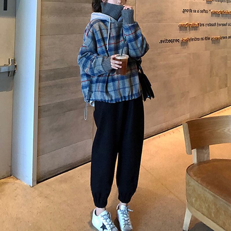 2ピースセット 魅せる セットアップ パーカー フーディー ロング丈 袖あり 長袖 ハイネック フード ポケット ポリエステル 大人女子 大人 上品 おしゃれ かっこいい クール カジュアル レトロ レトロ風 こなれ感 ラフ ルーズ シルエット 個性的 デザイン 主役級 存在感 スポーティー 柄 チェック柄 秋 冬 ウィンター 10代 20代 レディース 女性用 運動 アウトドア 動きやすい 休日 おうち 着回し 普段使い トレンド S M L XL 2XL 3XL 大きいサイズ