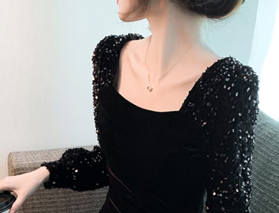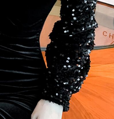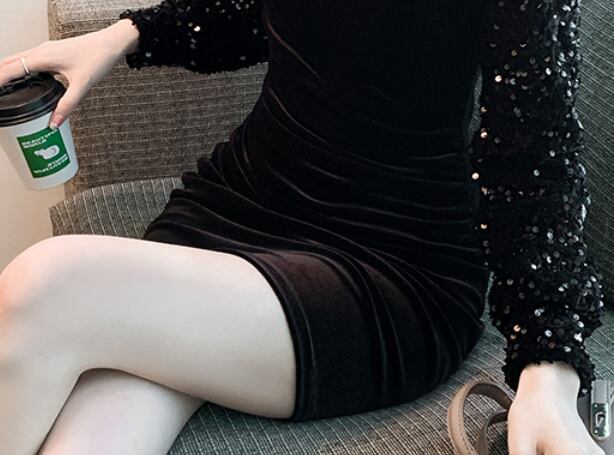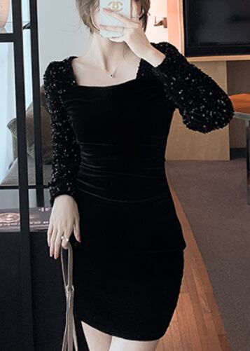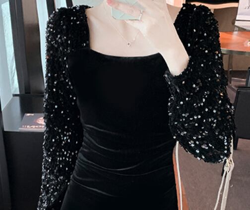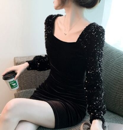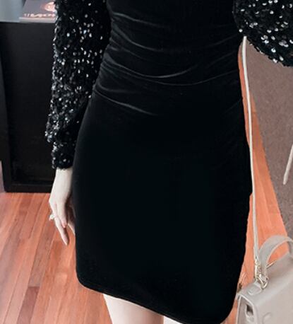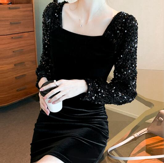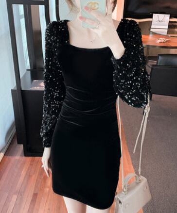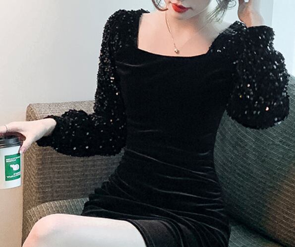 ベルベット&スパンコールワンピース ワンピース ワンピース ドレス ミニ丈 膝上 長袖 スクエアネック スリム タイト 細身 ベルベット スパンコール かわいい 大人可愛い きれいめ シンプル 大人 上品 かっこいい 大人女子 クール セクシー 主役級 存在感 フォーマル 無地 オールシーズン 誕生日 謝恩会 結婚式 二次会 披露宴 クリスマス バレンタイン 10代 20代 30代 40代 レディース 女性用 デート お出かけ パーティー イベント スタイル 目立つ S M L XL 黒 ブラック