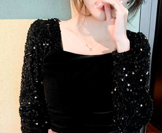 素材にもこだわりました。ベルベット素材は肌触りが柔らかく、毛足の長い繊維が高級感を演出。また、スパンコールが印象的なデザインは、存在感バツグンで、華やかさを感じられます。何かとお出かけの多い季節に、この一枚で目立ったスタイルを作り上げましょう。