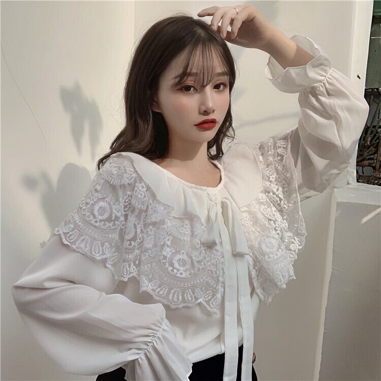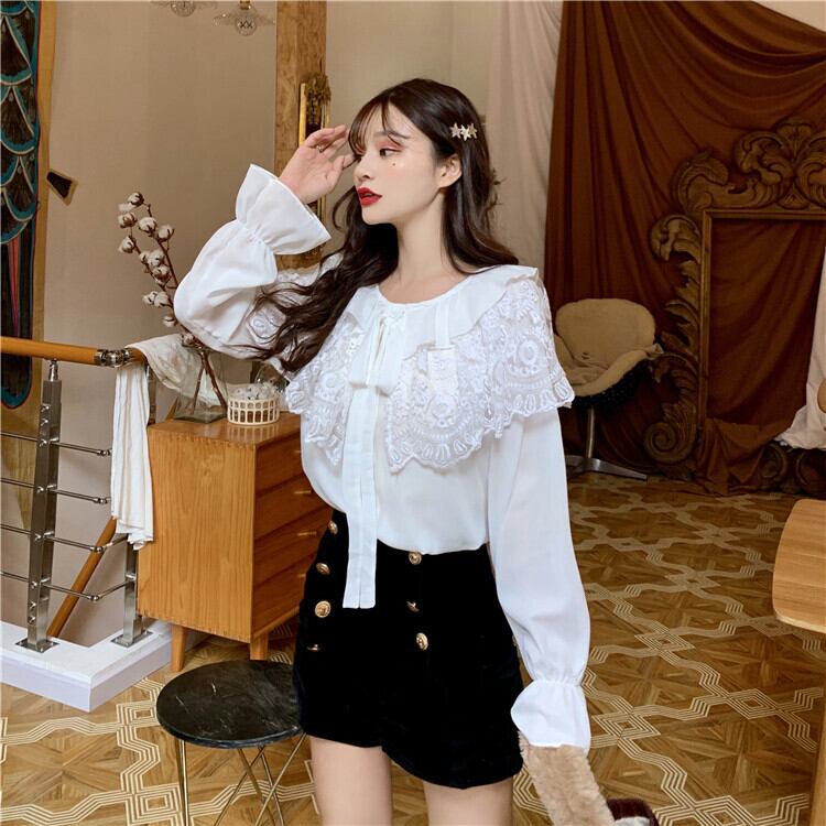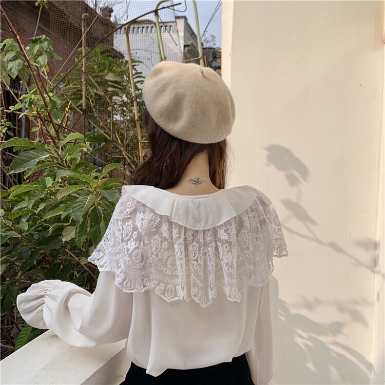 「大襟にレースが可愛い♪」ドールカラーブラウス。