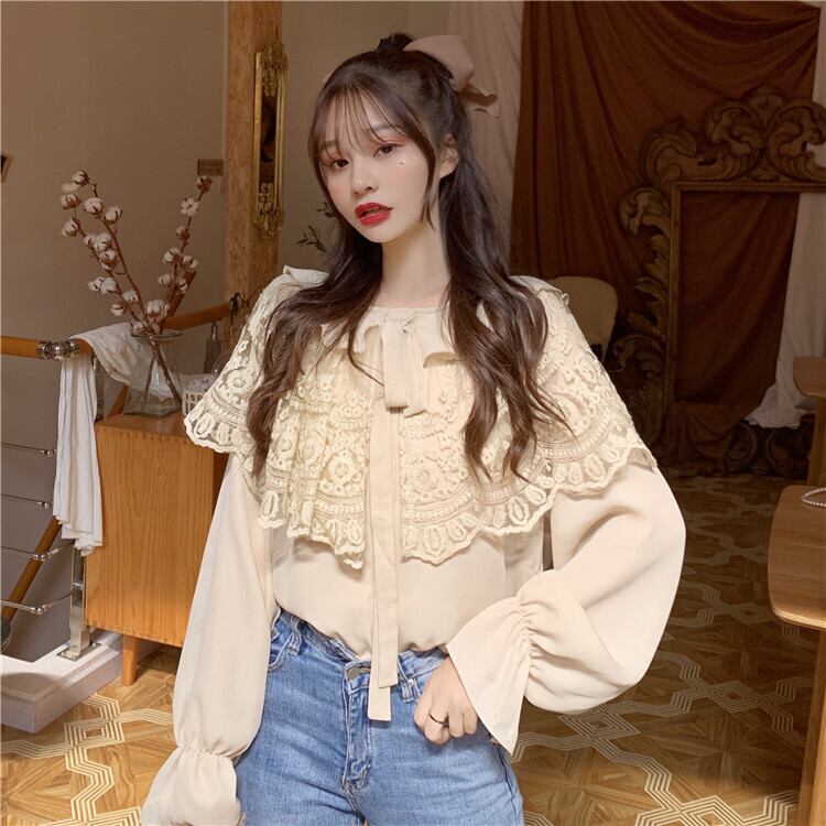 ドールカラーブラウス トップス ブラウス ミディアム丈 袖あり 長袖 襟付き 大襟 レース かわいい 大人可愛い きれいめ 大人 上品 おしゃれ お洒落 かっこいい レトロ ラブリー キュート 個性的 クール モード系 モダン 主役級 存在感 無地 春 秋 入学式 入園式 謝恩会 二次会 10代 20代 30代 レディース 女性用 ママ ファッション コーデ モテ ギフト 新作 トレンド 流行 インスタ映え イメチェン 好感度 イメージアップ 注目 話題 新入荷 目玉 おすすめ ベージュ アプリコット