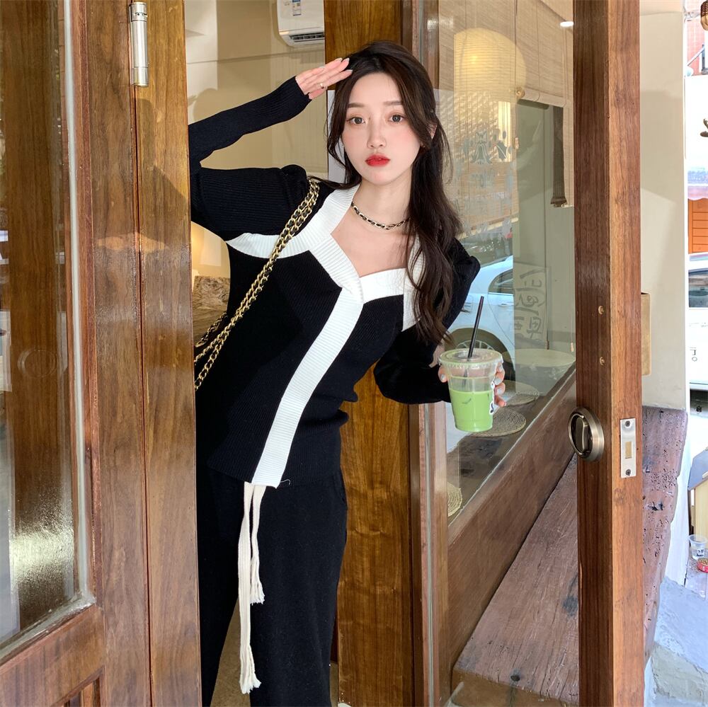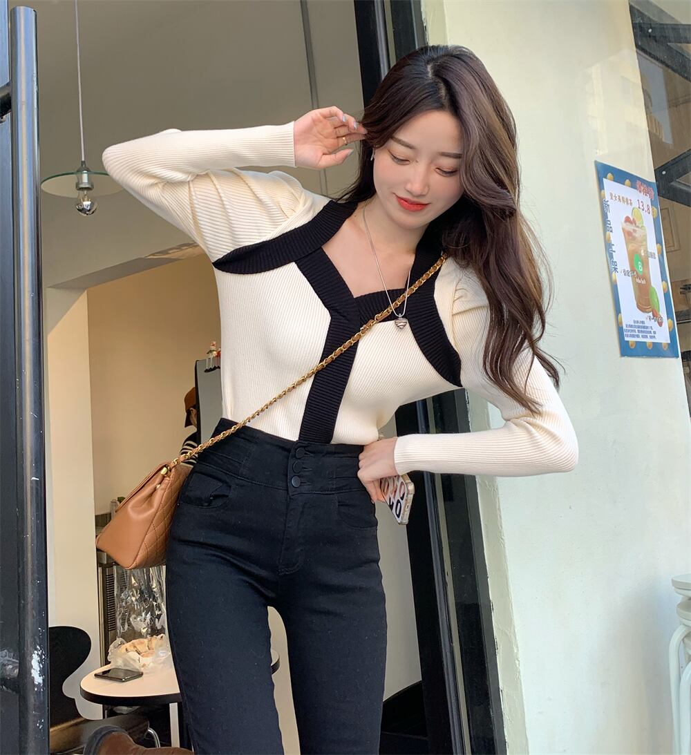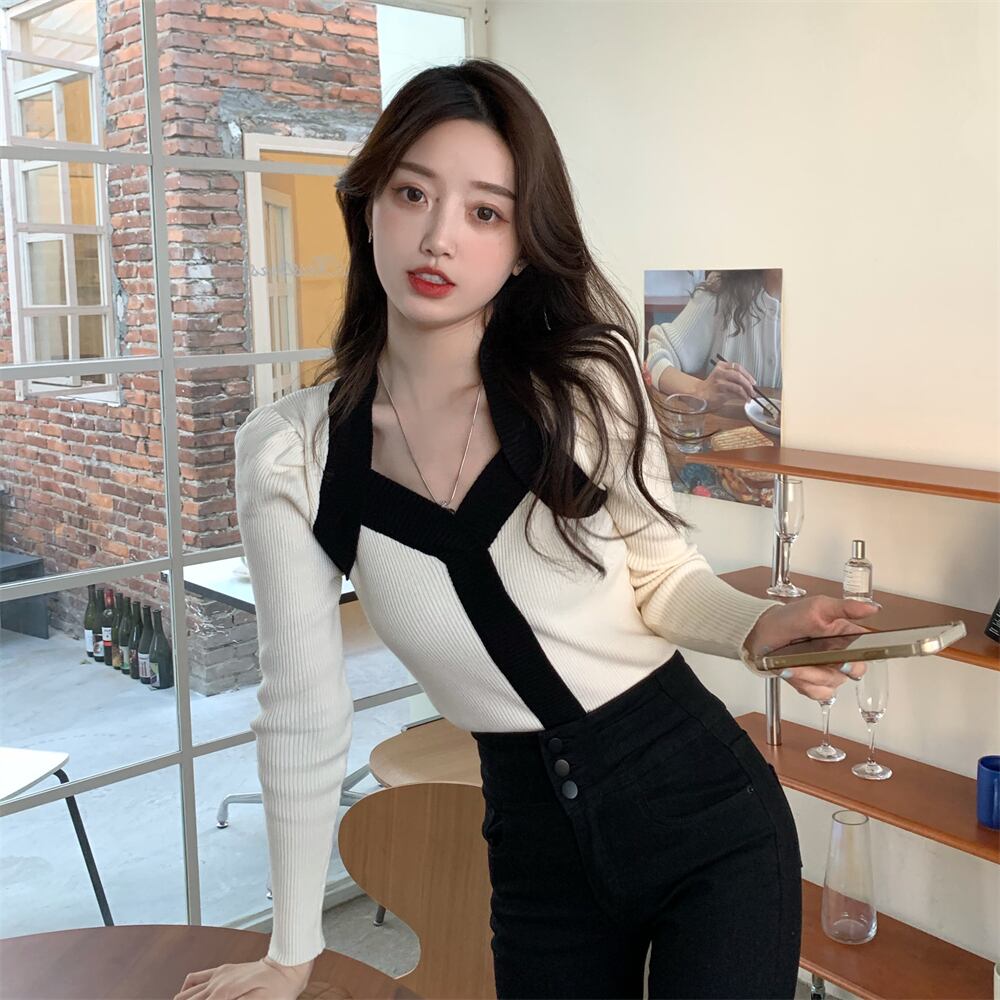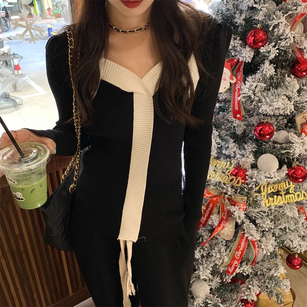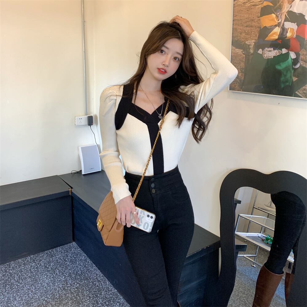 ツートーンニットセーター トップス 袖あり 長袖 Vネック スリム タイト 細身 ニット かわいい 大人可愛い きれいめ シンプル 大人 上品 おしゃれ お洒落 かっこいい レトロ ボーイッシュ スポーティー 個性的 クール モード系 セクシー エレガント モダン 主役級 存在感 春 秋 10代 20代 30代 レディース 女性用 ママ オフィス OL 通勤 学生 通学 デート お出かけ 休日 イベント リゾート 旅行 ガーデン レストラン 普段使い ファッション コーデ スタイル 暖かい モテ ギフト