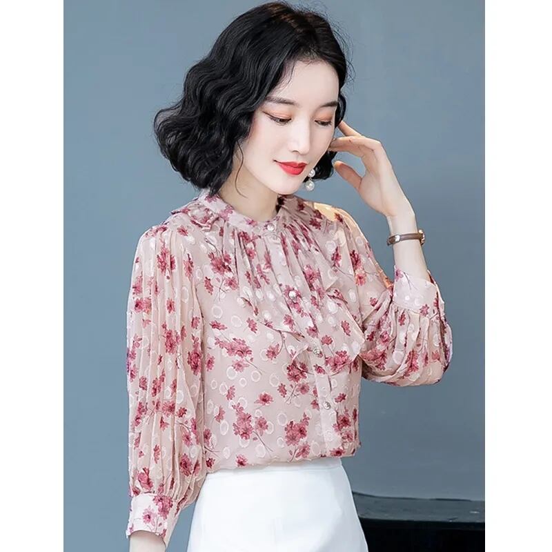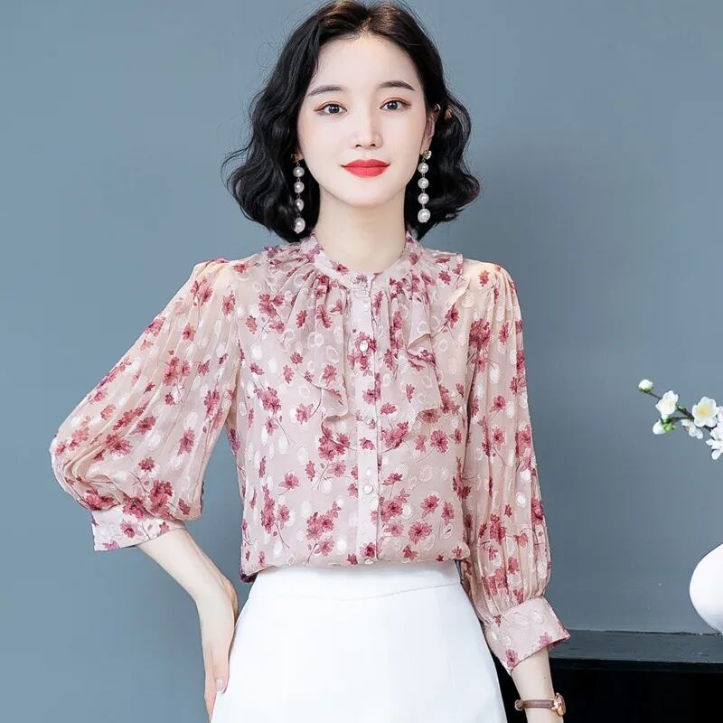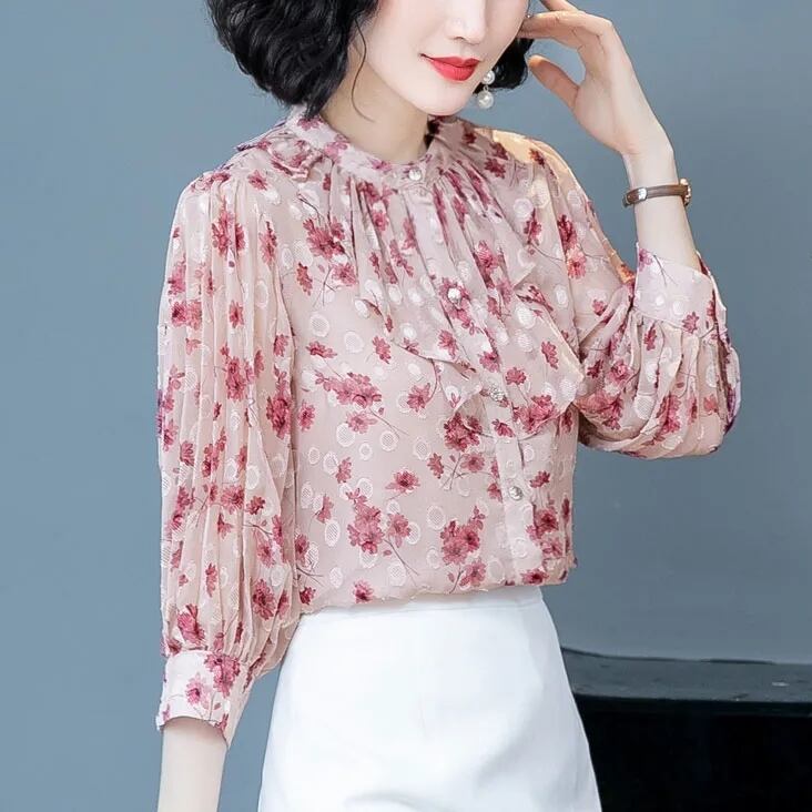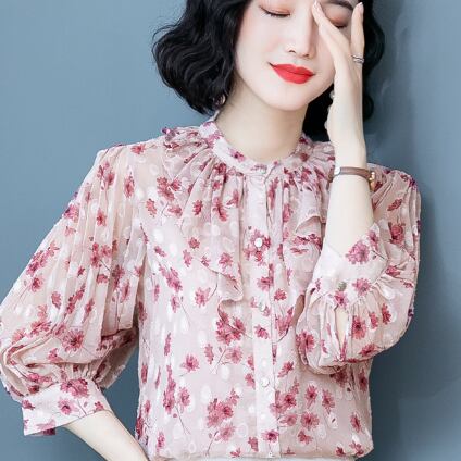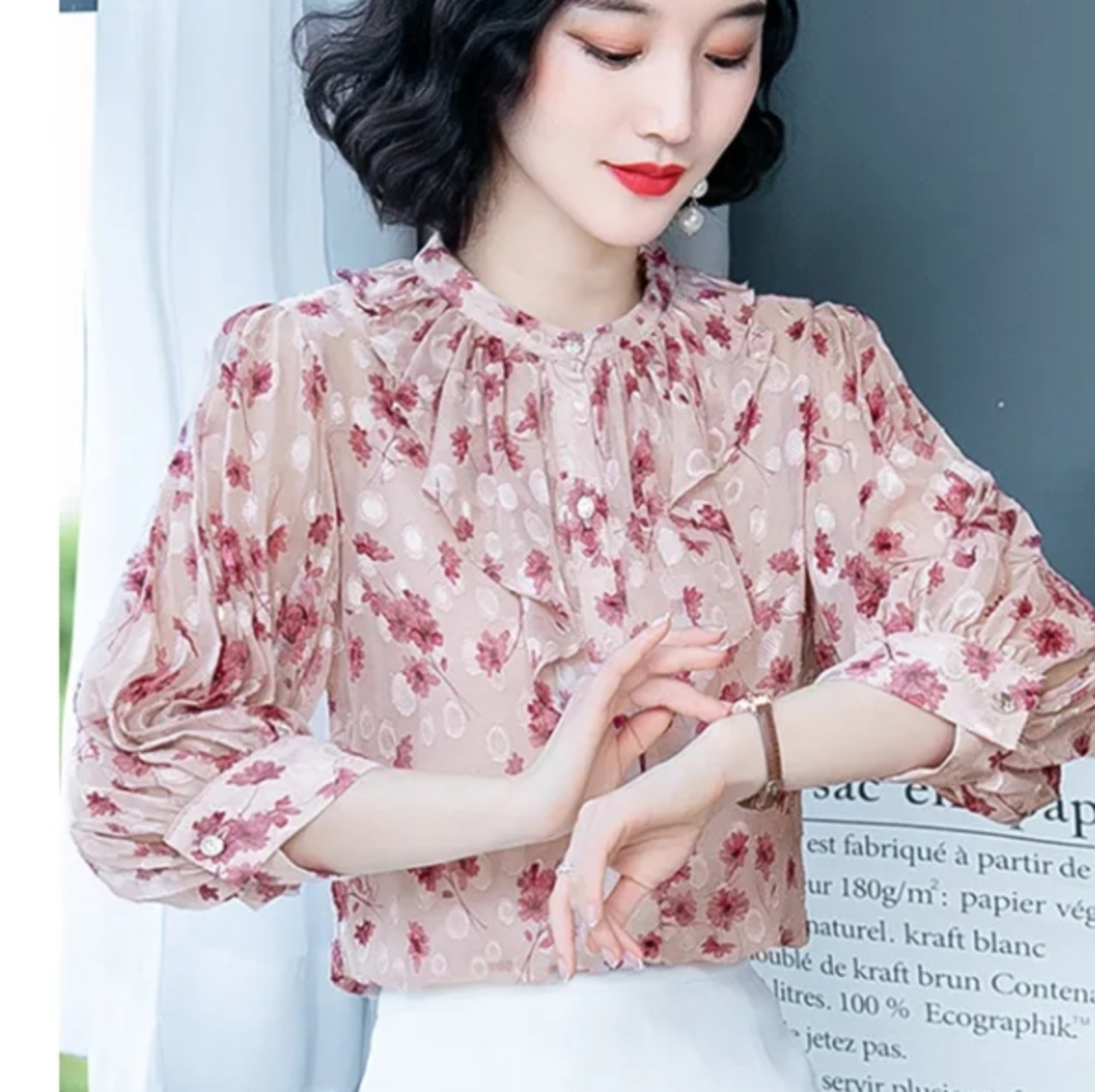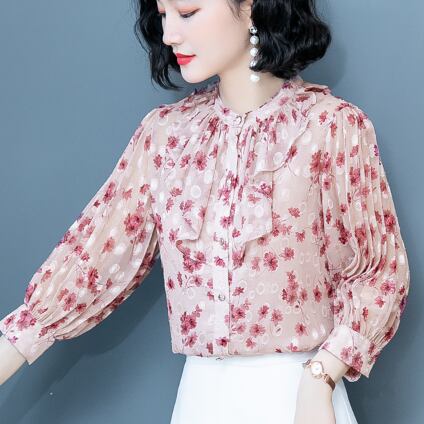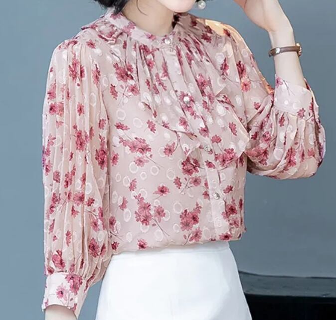 7分袖 花柄 水玉 ドット フリル シフォン ブラウス シャツ ピンク フラワー トップス 袖あり ボリューム袖 ドルマンスリーブ 襟なし かわいい 大人可愛い きれいめ シンプル 大人 上品 おしゃれ お洒落 大人女子 こなれ感 キュート ガーリー エレガント 主役級 存在感 春 2021 レディース 女性用 学生 通学 デート 休日 お出かけ 女子会 イベント 旅行 着回し 普段使い 定番 韓国系 オルチャン モテ トレンド 流行 インスタ映え おすすめ インポート S M L XL 2XL 3XL