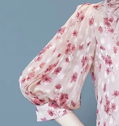 春らしい花柄とドットが可愛らしい7分丈のシフォンブラウスです。