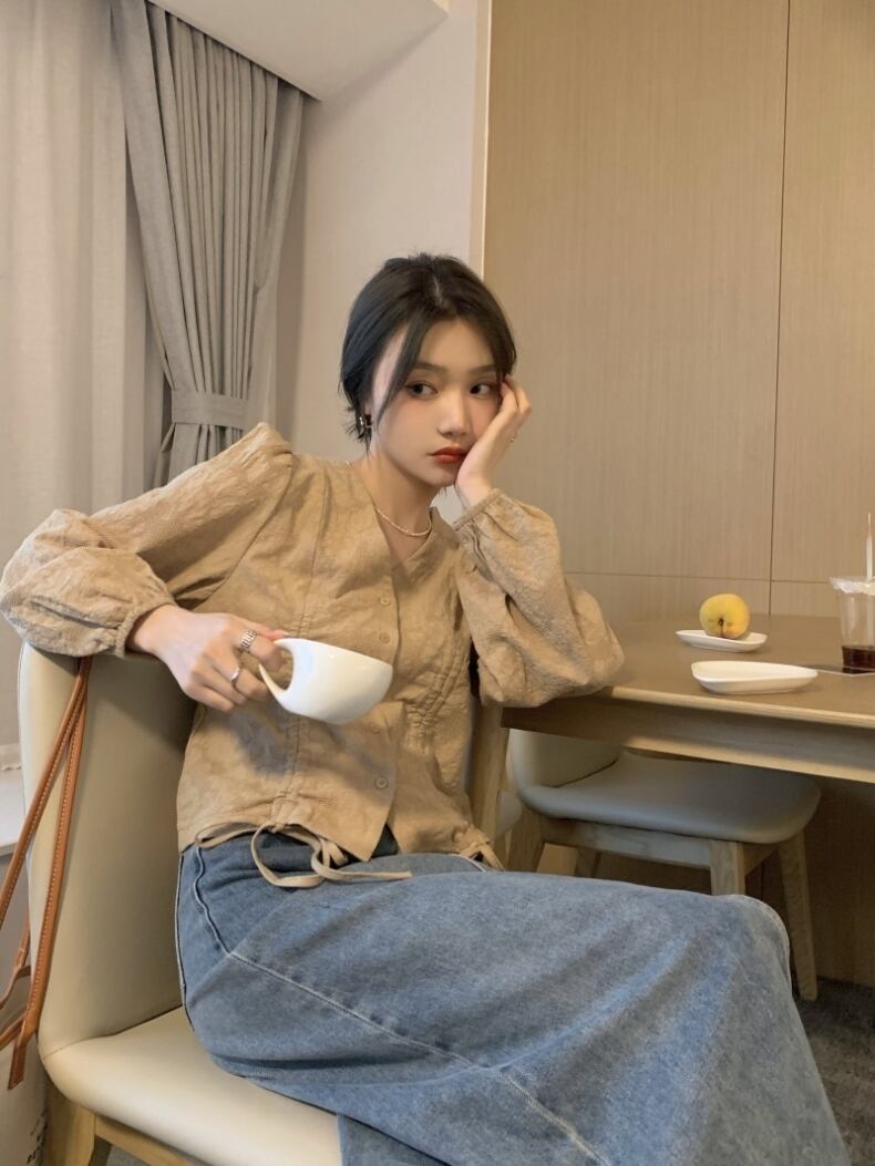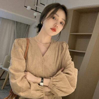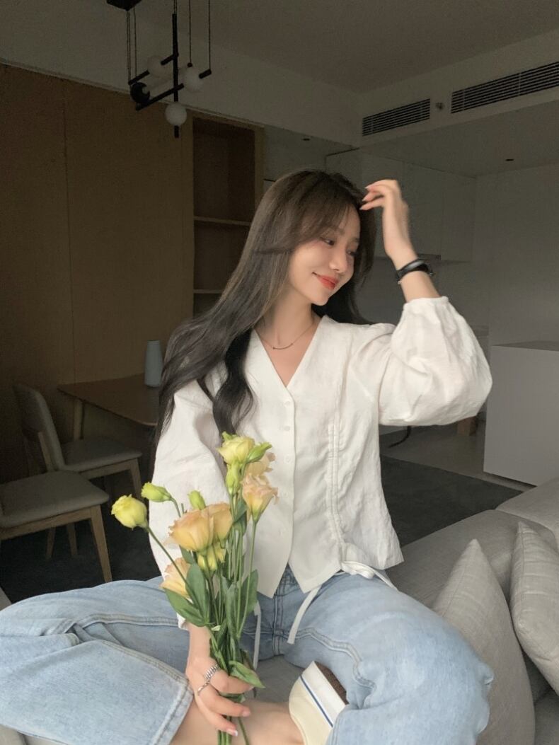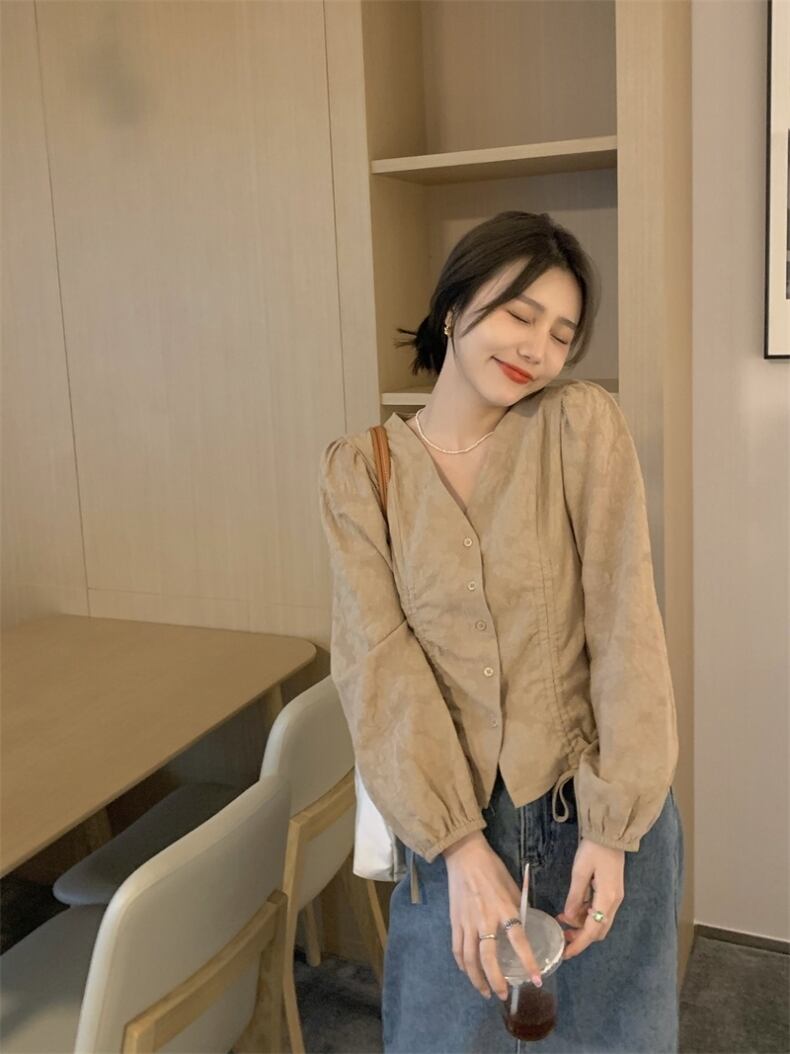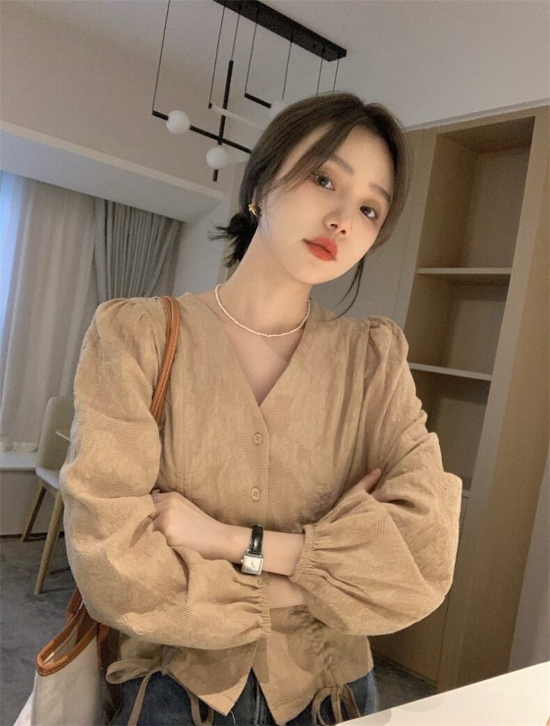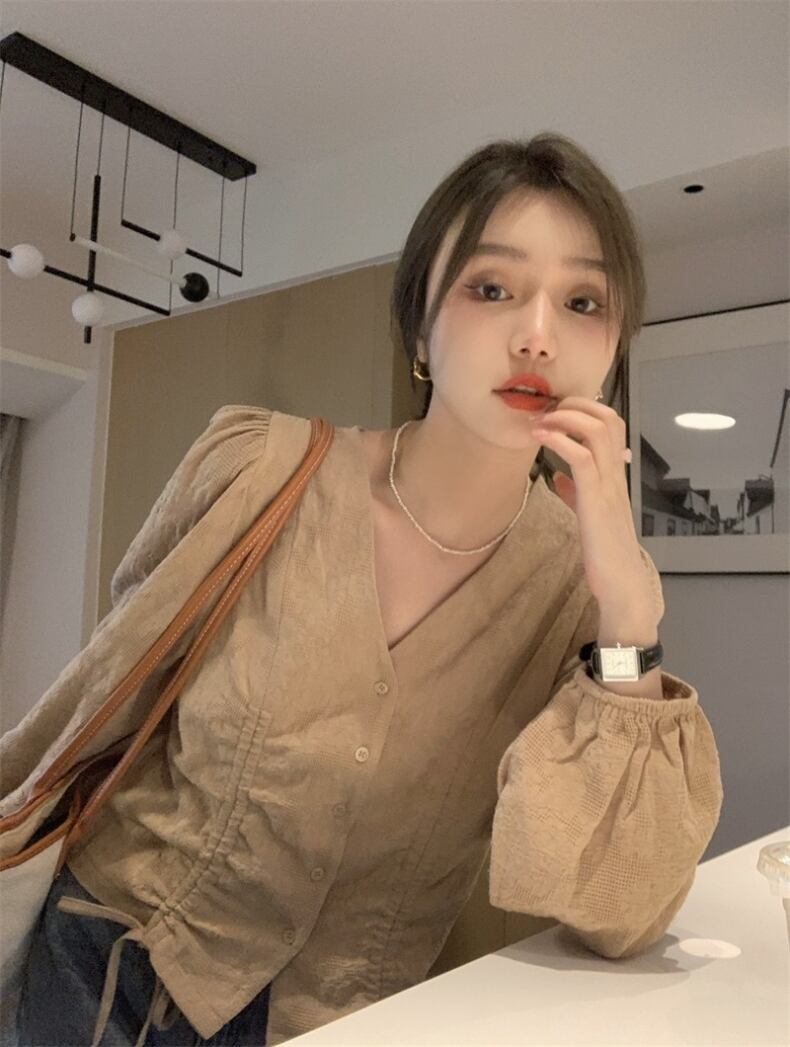 Vネックボリューム袖ブラウスです。