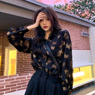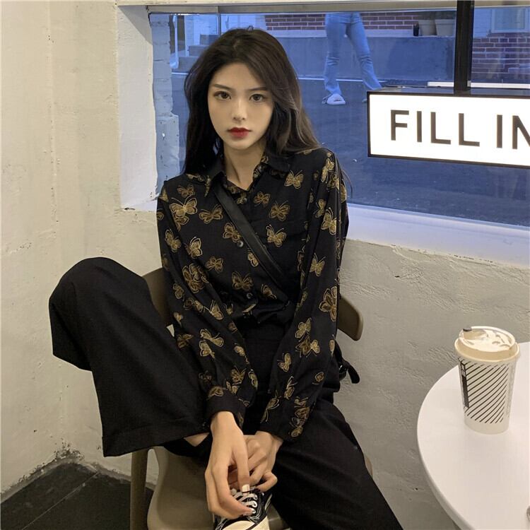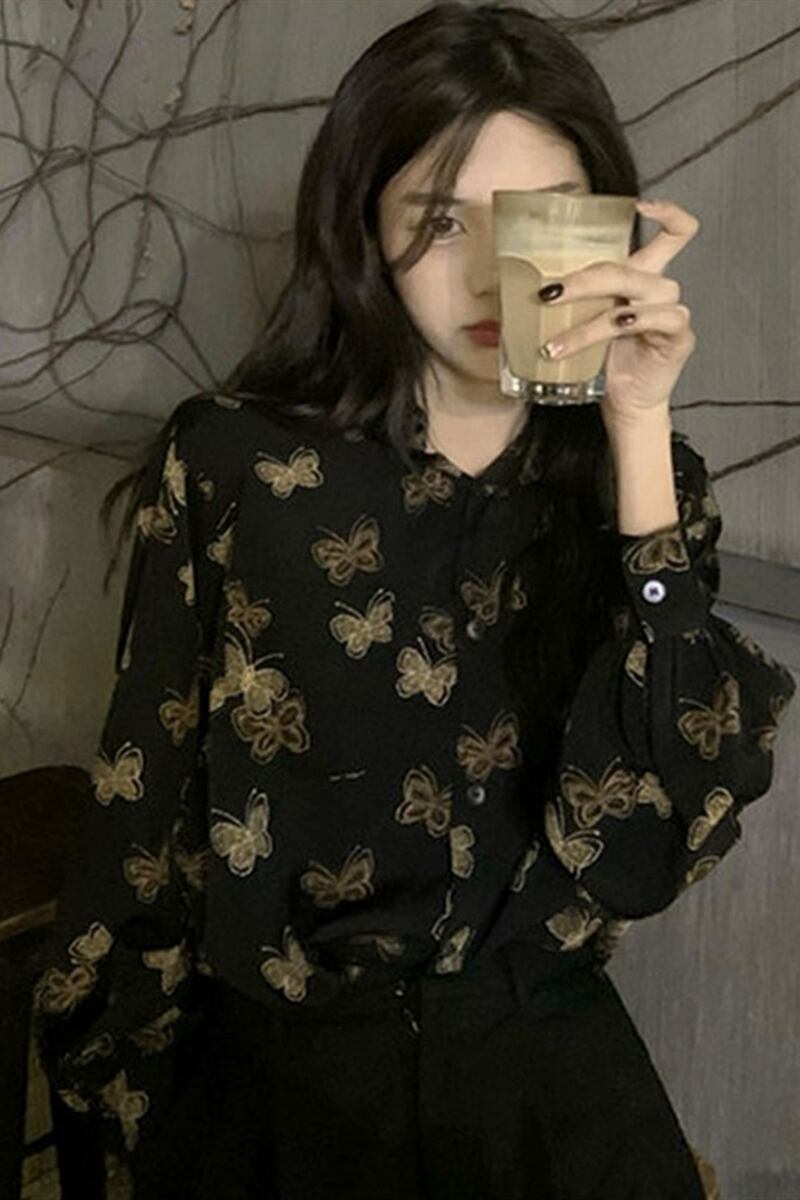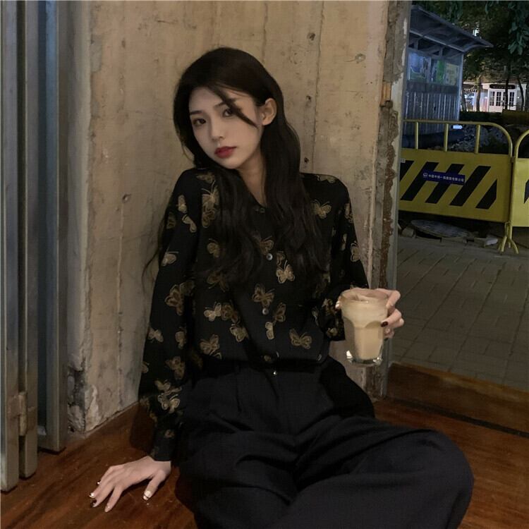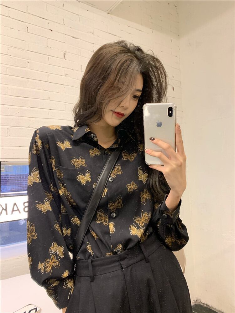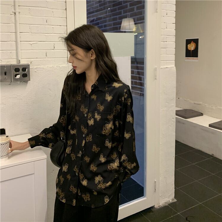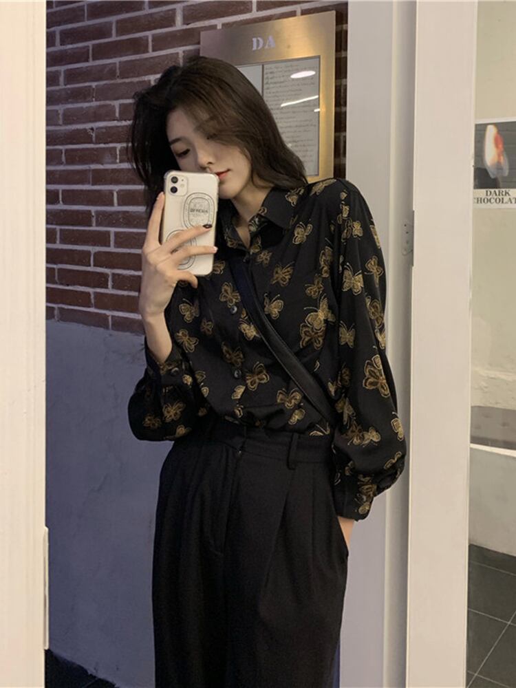 シフォンシャツ 魅せる トップス シャツ ブラウス ブラック 黒 袖あり 長袖 襟付き ストレート ポリエステル 大人女子 大人 上品 おしゃれ かっこいい クール カジュアル エレガント レトロ レトロ風 こなれ感 ラフ ルーズ シルエット 個性的 デザイン 主役級 存在感 柄 プリント 春 スプリング 秋 オータム 10代 20代 30代 レディース 女性用 オフィス ビジネス OL 通勤 学生 通学 デート お出かけ 女子会 着回し 普段使い S M L