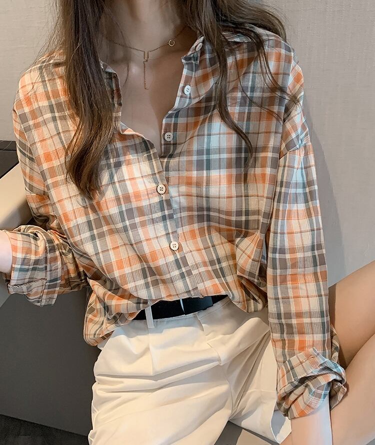 マルチカラーチェック アンバランスヘム チュニック丈 羽織り トップス シャツ ブラウス ミディアム丈 長袖 ドロップショルダー 襟付き かわいい 大人可愛い シンプル カジュアル 上品 おしゃれ こなれ感 チェック柄 格子柄 春 夏 冬 オールシーズン レディース 女性用 ママ 女の子 学生 通学 デート お出かけ 公園デビュー 休日 着回し 普段使い 重ね着 韓国系 オルチャン スタイル 楽ちん 体系カバー 定番 M L XL 2XL 3XL 4XL 大きい ゆる サイズ グリーン オレンジ