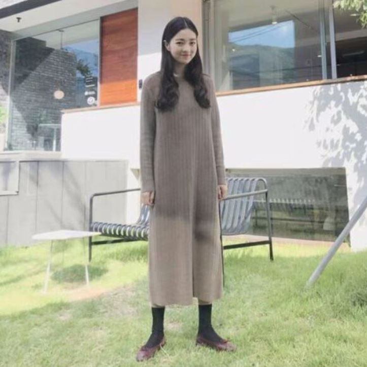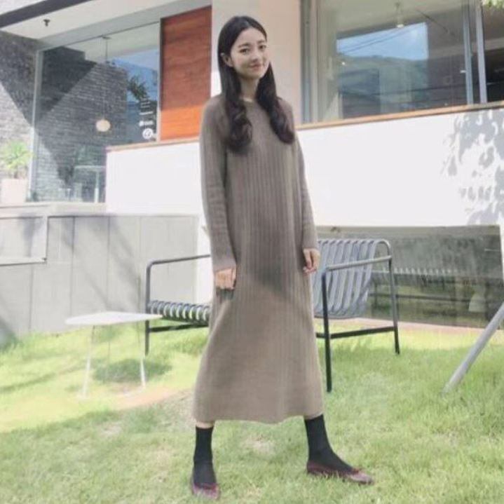 ナチュラル リラクシー ワンピース 膝下 ミモレ丈 ミディアム丈 長袖 ラウンドネック ストレート Iライン 綿 ニット かわいい 大人可愛い シンプル カジュアル 上品 おしゃれ レトロ 無地 シマ 春 冬 2021 レディース 女性用 ママ 女の子 通勤 学生 通学 デート お出かけ 公園デビュー 女子会 休日 着回し 普段使い 重ね着 韓国系 オルチャン ファッション 楽ちん 体系カバー 定番 S M L XL ゆったり ゆる サイズ オートミール 洋服 好感度 新入荷