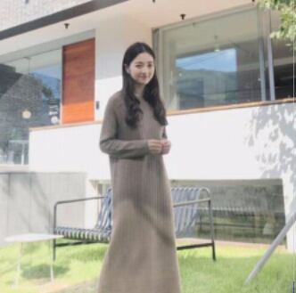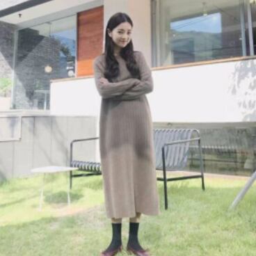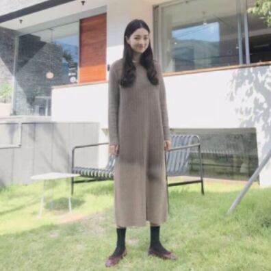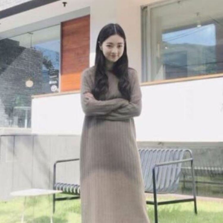 ニットの編み地がさりげなく縦ラインを強調してくれるのでらくちんだけど着膨れせず、アクセサリーやストール等の小物・羽織りもの次第でシンプルにもフェミニンにも着回せる万能さも魅力です♪