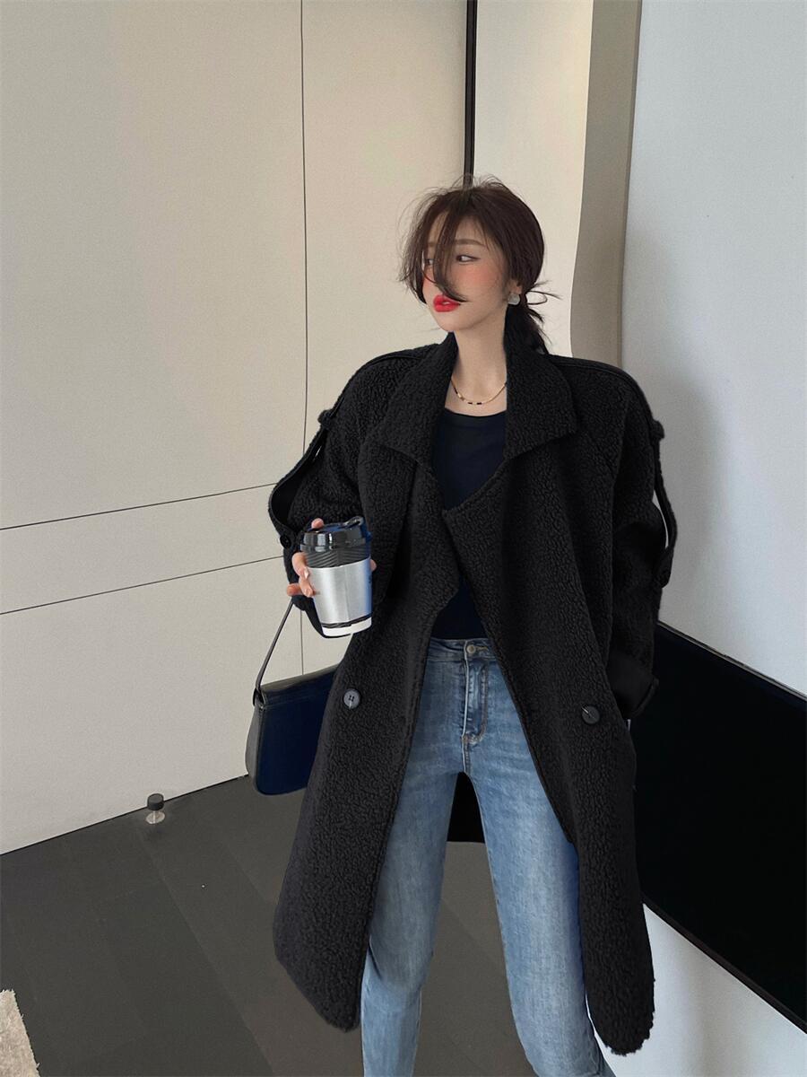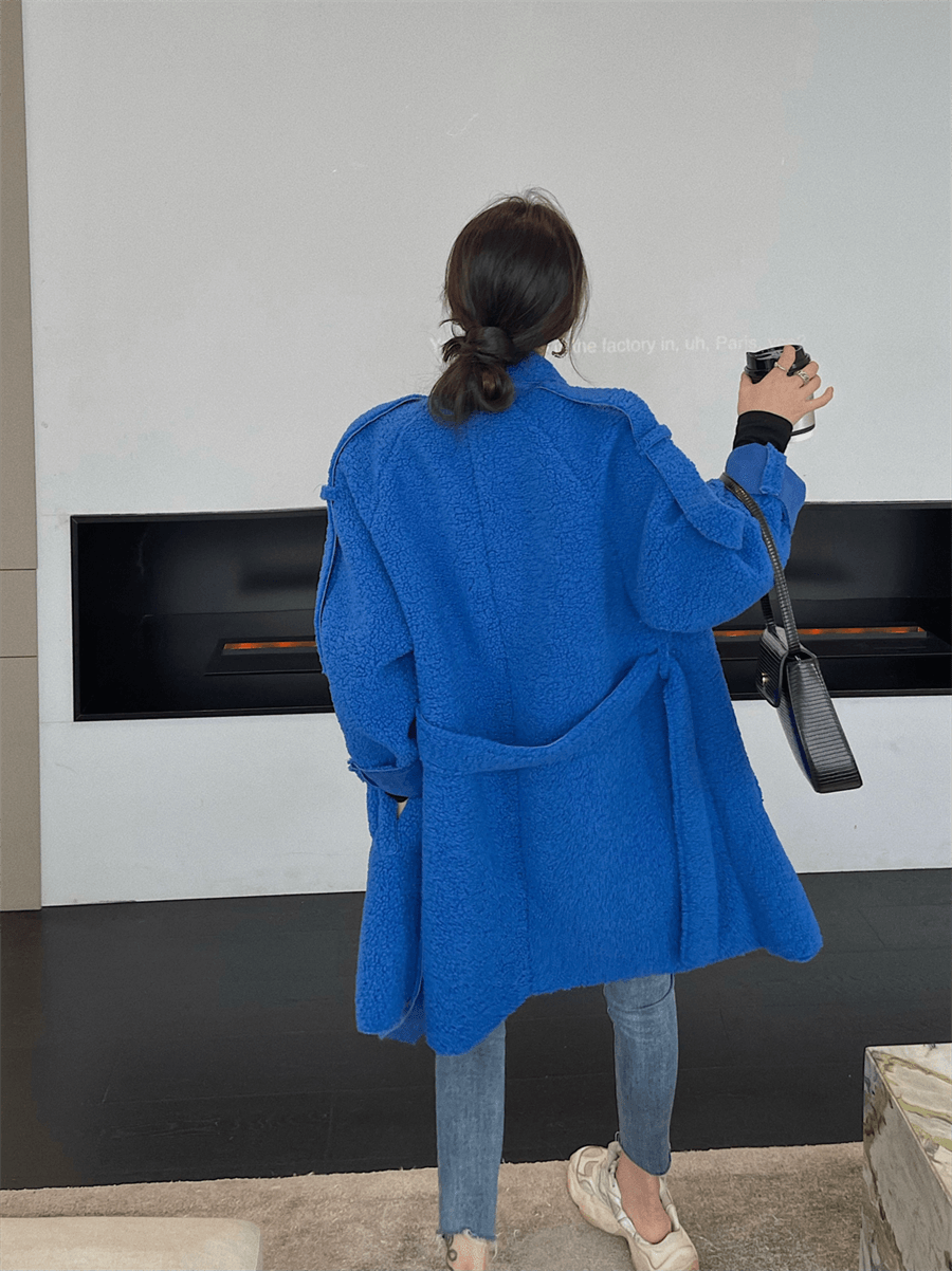 オーバーサイズ 肩ベルト ラグランスリーブ テーラードカラー ガウンコート アウター コート 膝丈 膝上 ミディアム丈 長袖 襟付き ウエストマーク ウエストリボン モコモコ ポケット ボア かわいい 大人可愛い シンプル カジュアル 上品 おしゃれ こなれ感 ルーズ 無地 秋 冬 レディース 女性用 ママ 女の子 学生 通学 デート お出かけ 女子会 休日 着回し 普段使い 重ね着 韓国系 オルチャン コーデ 楽ちん 体系カバー フリーサイズ 大きめ ゆる サイズ ブラック ブルー グリーン