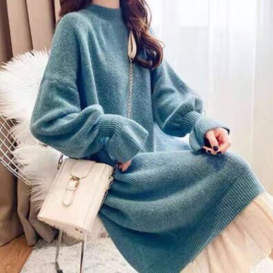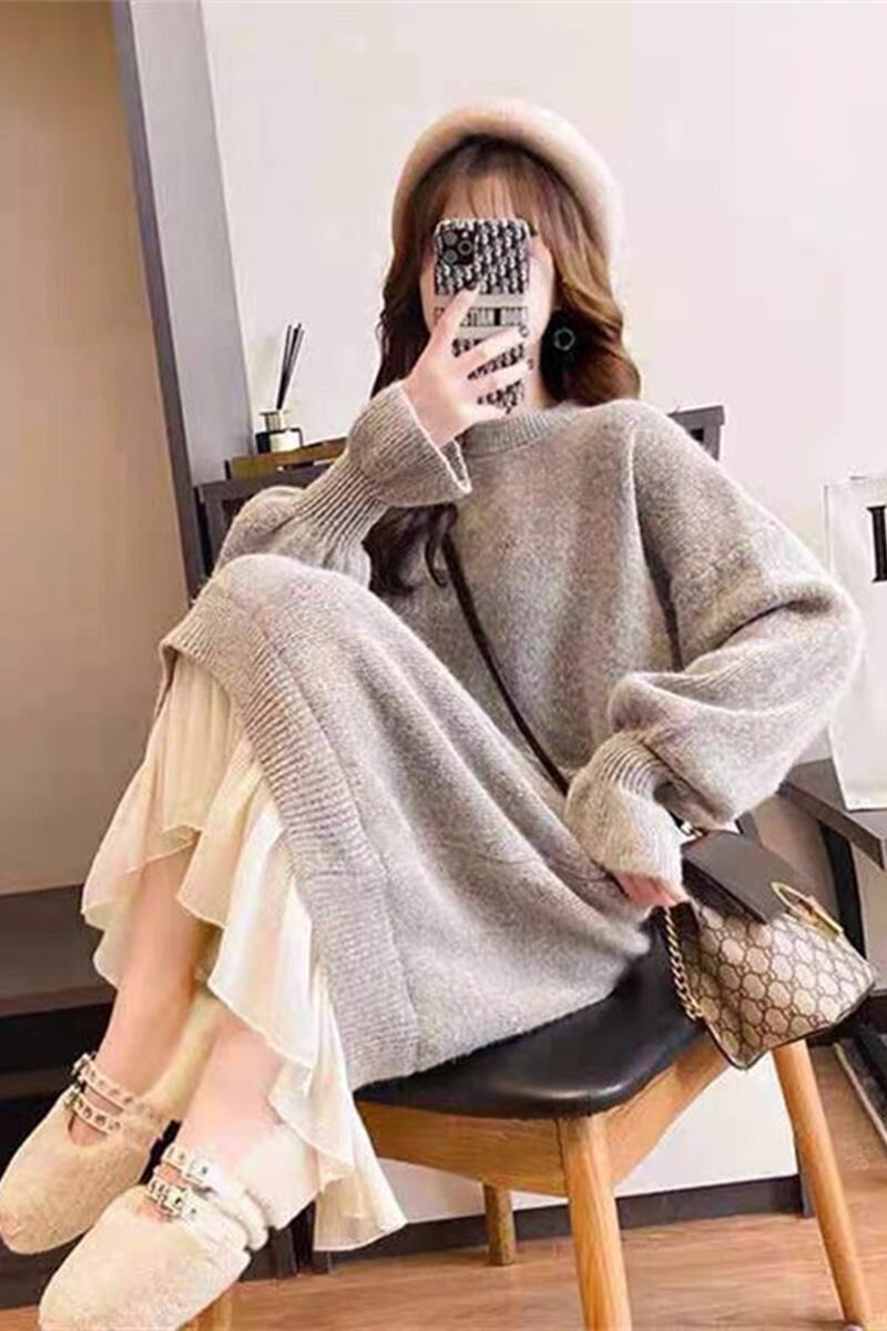 ニットワンピース ワンピース 膝下 ロング ロング丈 長袖 ラウンドネック ストレート Iライン 切り替えデザイン ドッキング シフォン かわいい 大人可愛い シンプル おしゃれ お洒落 大人可愛い 大人女子 ラブリー キュート ガーリー エレガント 主役級 無地 春 秋 冬 10代 20代 30代 レディース 女性用 ママ 女の子 学生 デート お出かけ 女子会 お泊まり 休日 着回し 韓国 韓国系 ファッション コーデ スタイル 暖かい モテ 体系カバー 新作 定番 送料無料 トレンド 流行