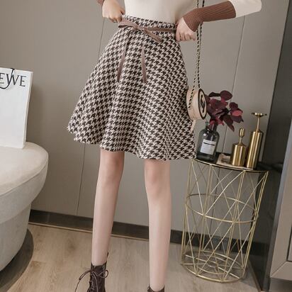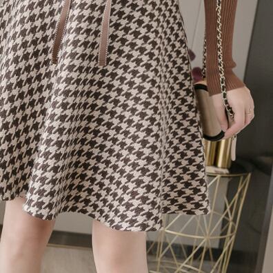 商品名にもなっている台形スカートは、シンプルながらトレンド感のあるデザインが特徴。上品で可愛らしさも兼ね備えたスカートは、どんなシーンでも活躍してくれます。千鳥格子のチェック柄がまた、レトロ感とトレンド感を両立した、魅力的な一着です。