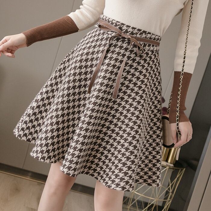 台形スカート スカート ボトムス ミニ ミニ丈 Aライン かわいい 大人可愛い カジュアル 上品 おしゃれ お洒落 レトロ 大人可愛い 大人女子 ラブリー キュート ガーリー 個性的 主役級 存在感 千鳥格子 春 夏 秋 冬 10代 20代 30代 レディース 女性用 学生 デート お出かけ 女子会 お泊まり 休日 着回し 韓国 韓国系 ファッション コーデ スタイル モテ 美脚 脚長 新作 定番 送料無料 トレンド 流行 インポート 海外 人気 女子力 リボン ウエストマーク ハイウエスト 個性的