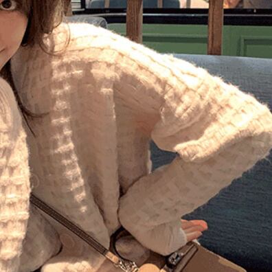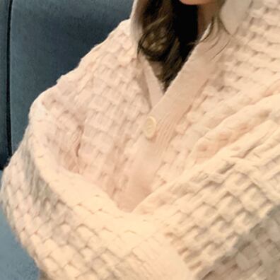編み込みが大きめのセーターカーディガンです。