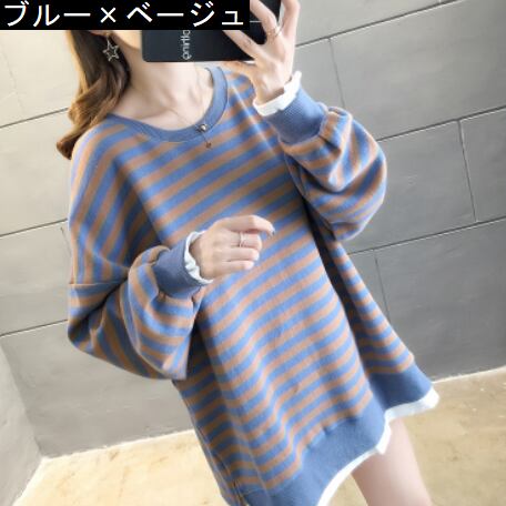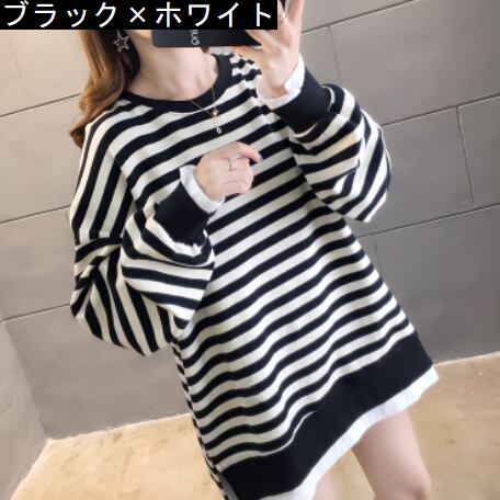 重ね着風 ボーダー ストライプ カットソー ブラック 黒 ホワイト 白 ピンク ブルー 青 水色 ネイビー 紺色 ベージュ トップス プルオーバー 袖あり 長袖 ボリューム袖 ドロップショルダー ラウンドネック 襟なし かわいい 大人可愛い シンプル カジュアル 大人 おしゃれ お洒落 大人女子 こなれ感 キュート 主役級 存在感 春 秋 2021 レディース 女性用 学生 通学 デート 休日 お出かけ 女子会 イベント 旅行 着回し 普段使い 定番 モテ おすすめ インポート M L XL 2XL