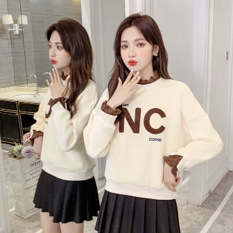 ロゴスウェット トップス トレーナー スウェット フリル 切り替えデザイン ドッキング かわいい 大人可愛い カジュアル おしゃれ お洒落 レトロ 大人可愛い 大人女子 スポーティー ラブリー キュート ガーリー 個性的 主役級 存在感 秋 冬 10代 20代 30代 レディース 女性用 ママ 学生 デート お出かけ 女子会 お泊まり 休日 普段使い 韓国 韓国系 ファッション コーデ スタイル 楽ちん 暖かい モテ 新作 定番 送料無料 トレンド 流行 インスタ映え インポート 海外 大人カジュアル